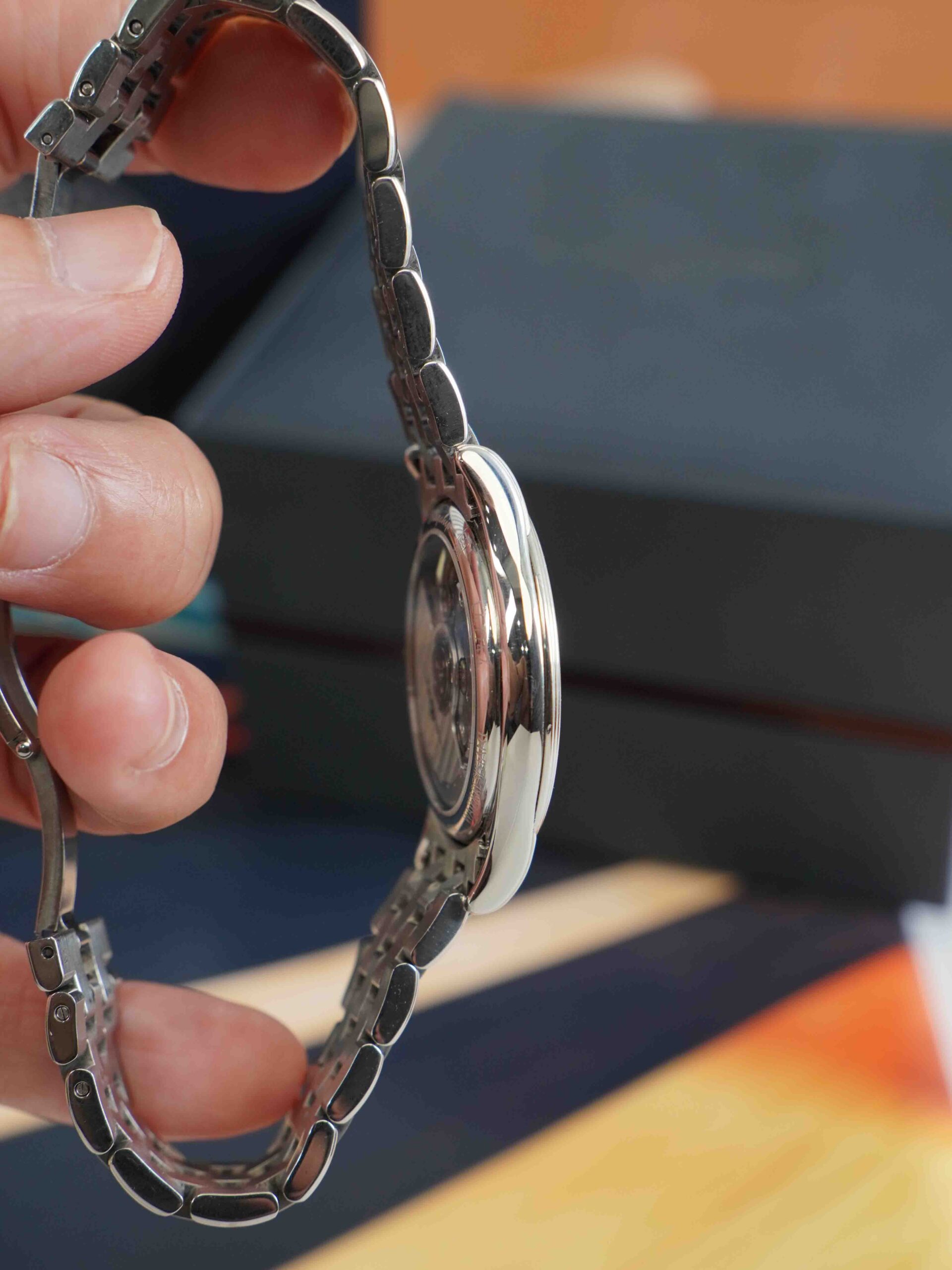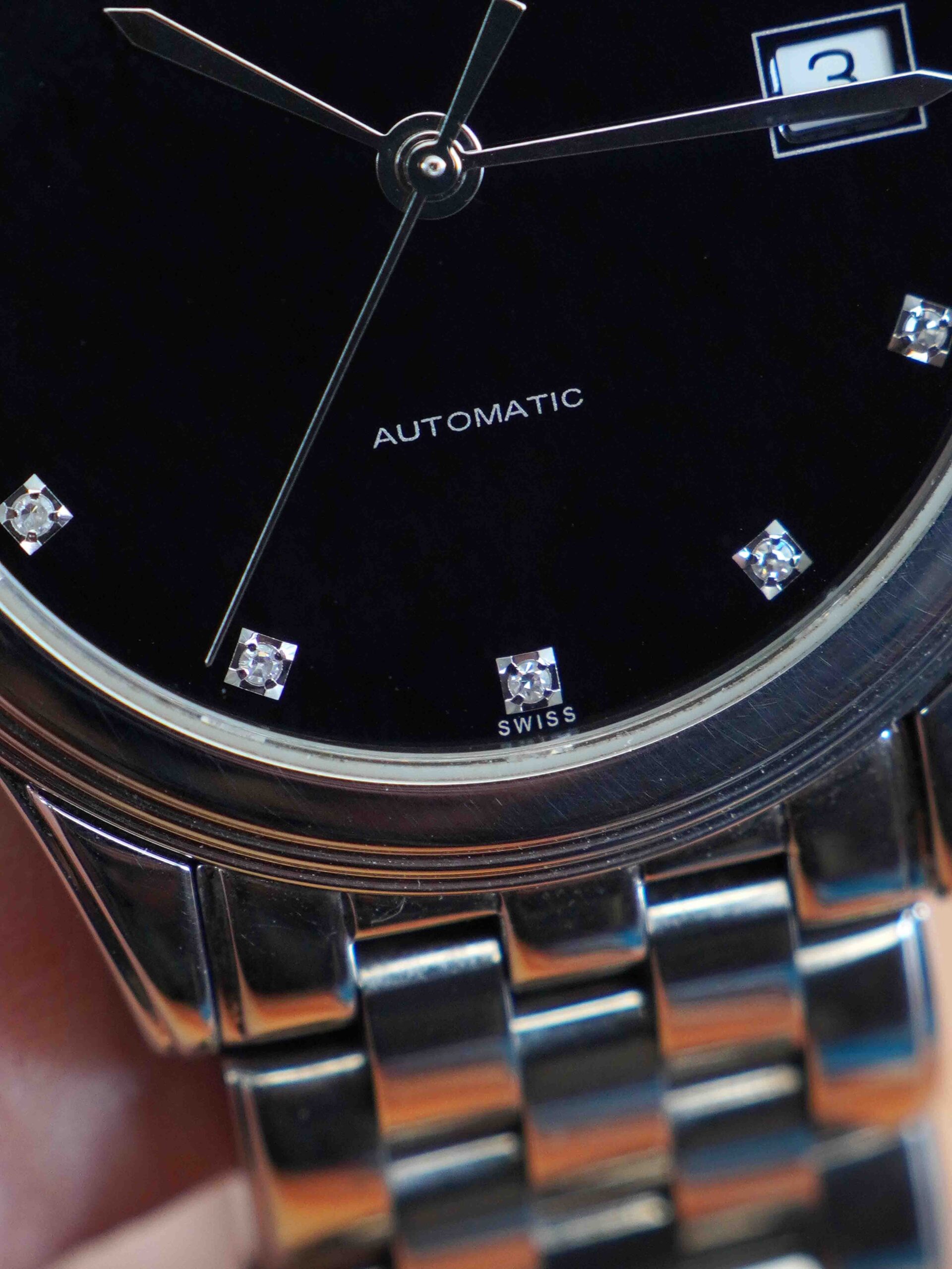 Điểm nổi bật đến từ 12 viên kim cương đính cọc số cực kỳ sang trọng và đẳng cấp nổi bật trên nền dial gold sang trọng cuốn hút