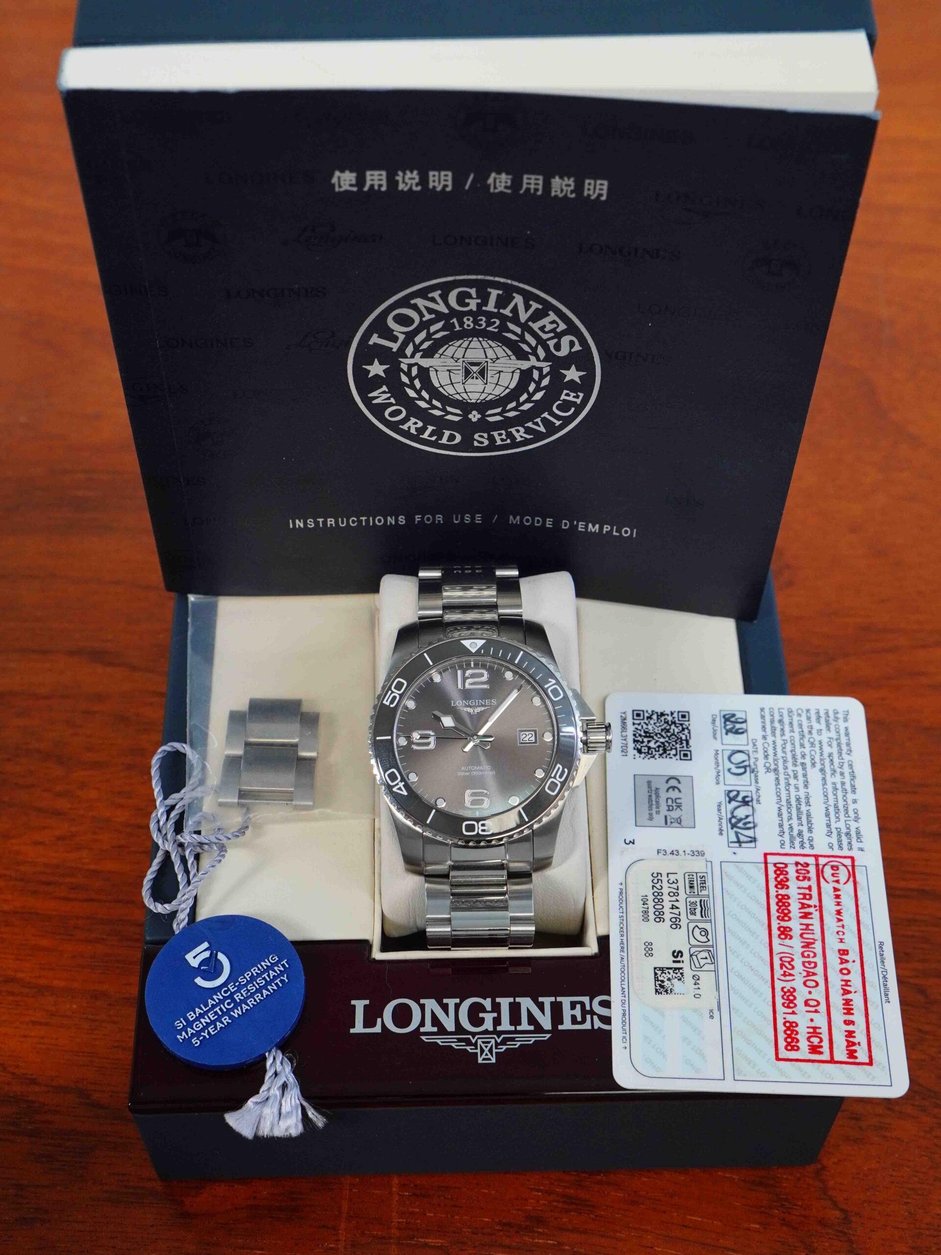 | Loại máy | L888 21 jewels , 25’200 VPH, 72 hours |