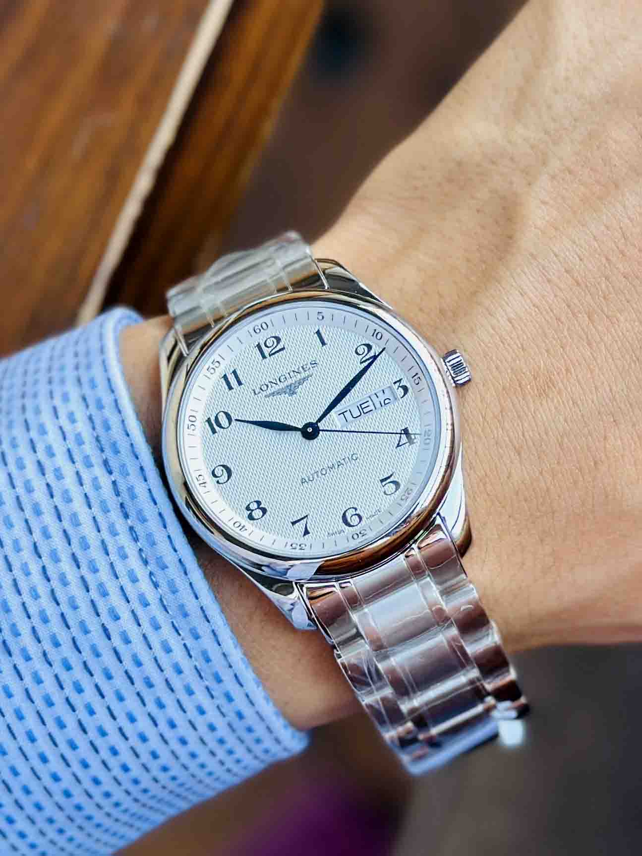 Độc đáo cùng các cọc số học trò, bộ kim xanh trên nền dial được dập vân lượn sóng tuyệt đẹp luôn ạ