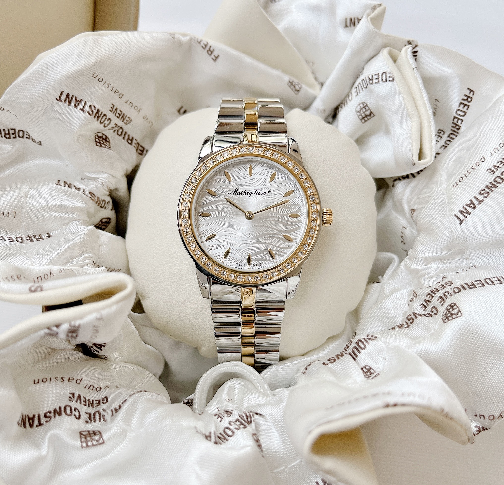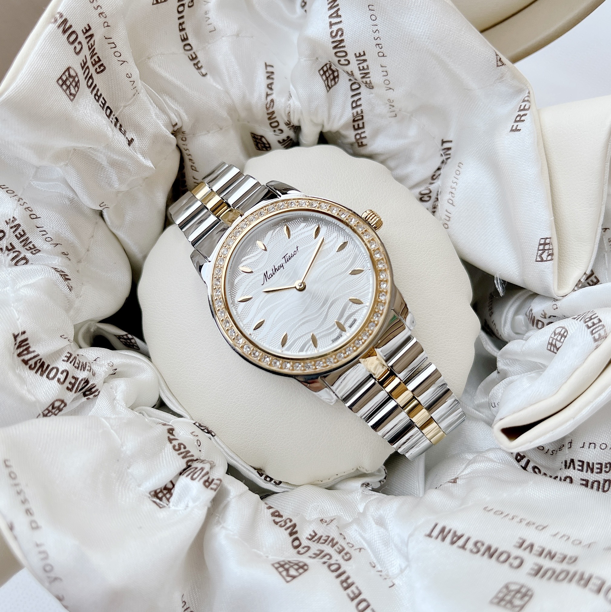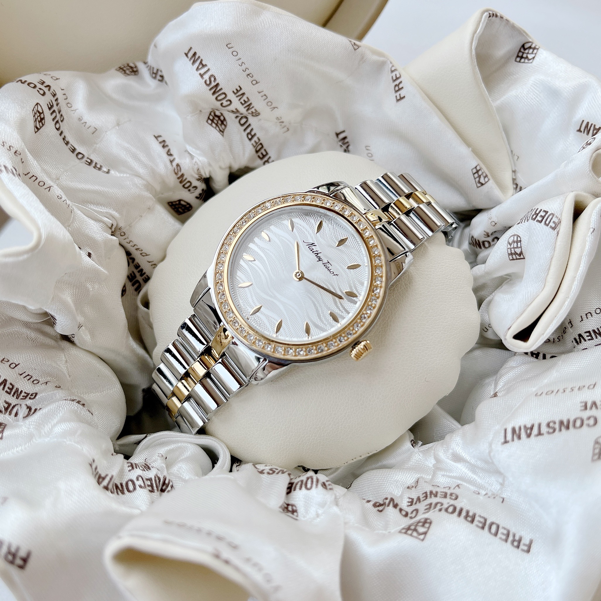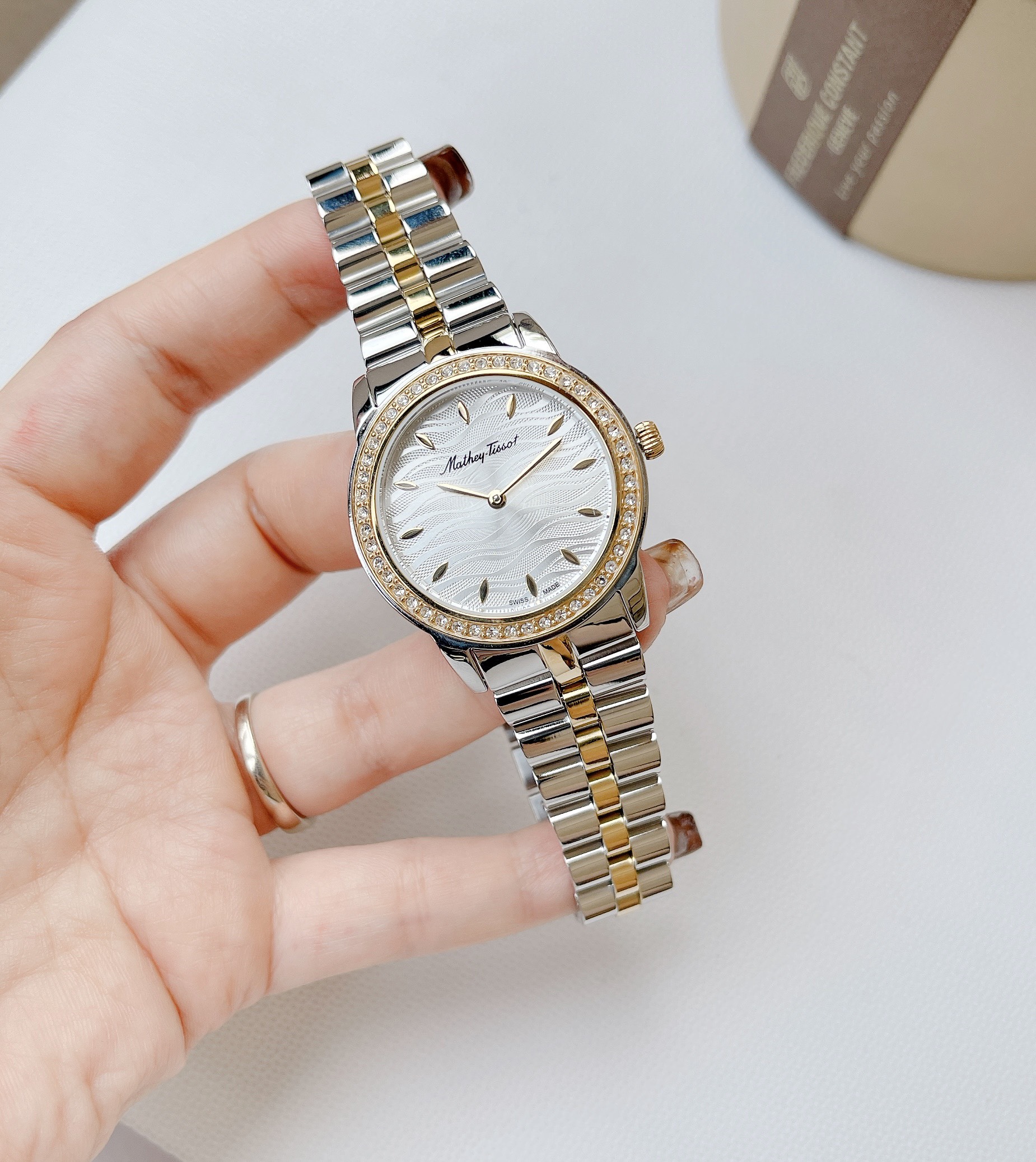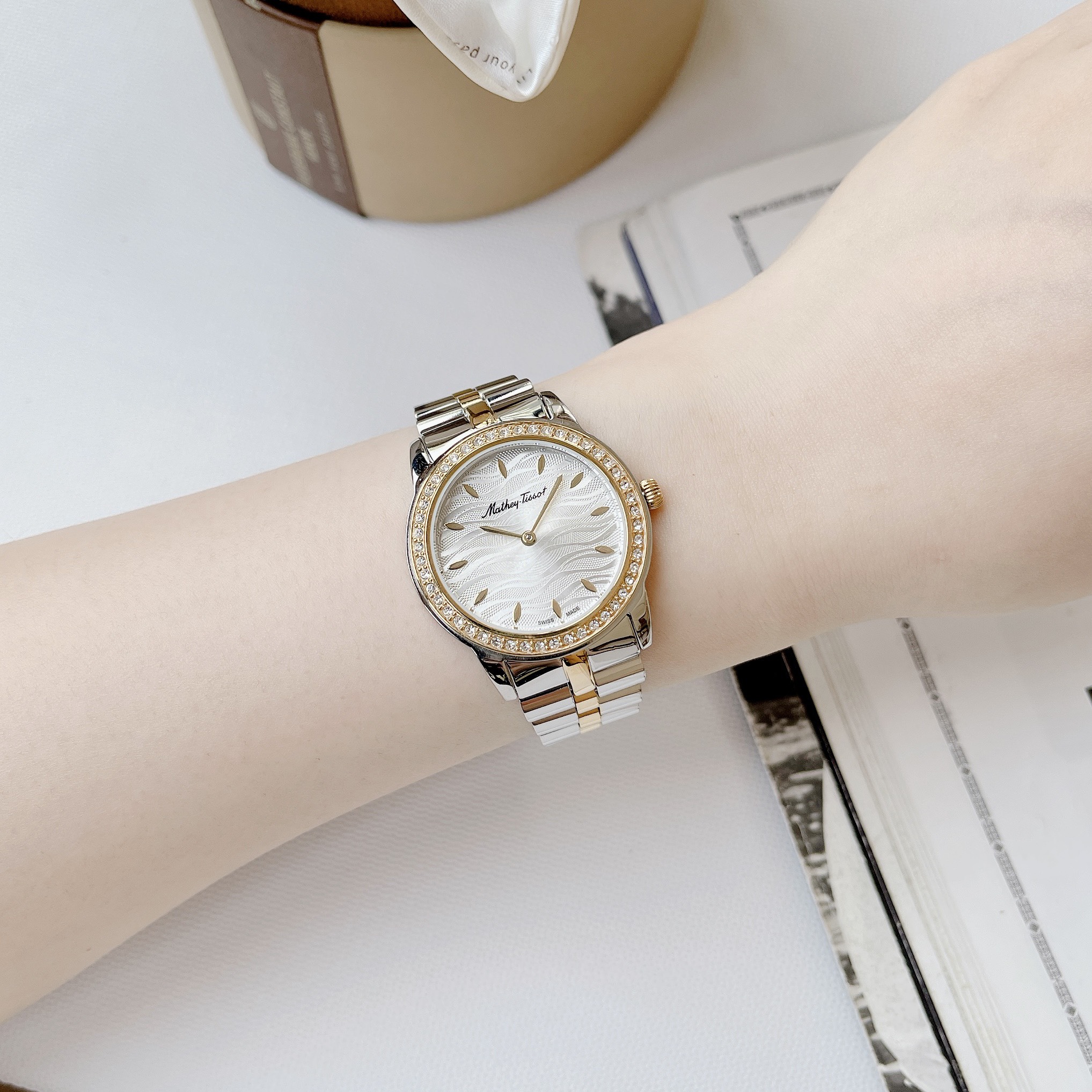 – Case 32mm, dial vân sóng đẹp mắt – Máy Quartz Ronda Swiss Made