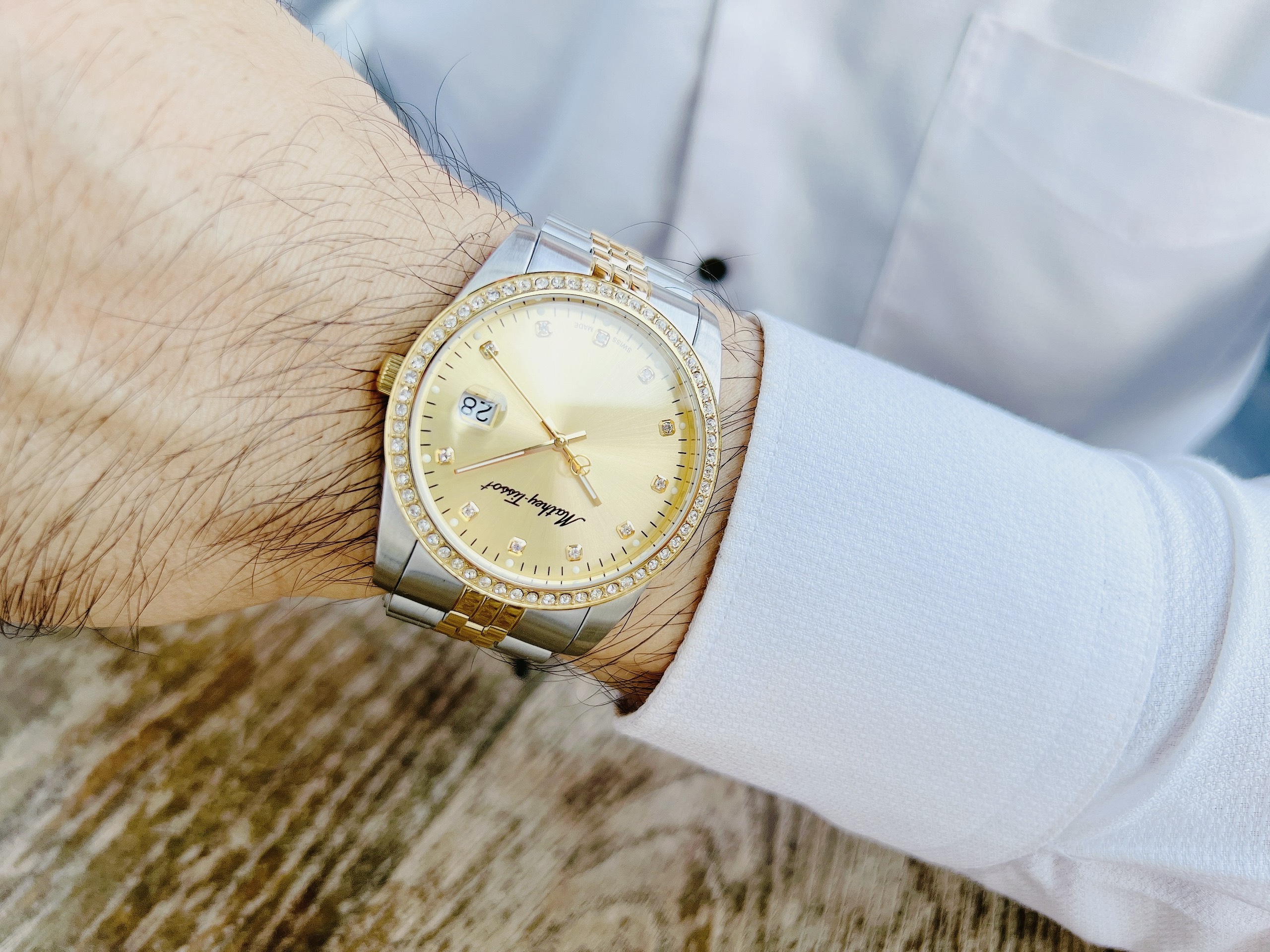 – Mặt đồng hồ kim dạ quang, cọc số đính đá