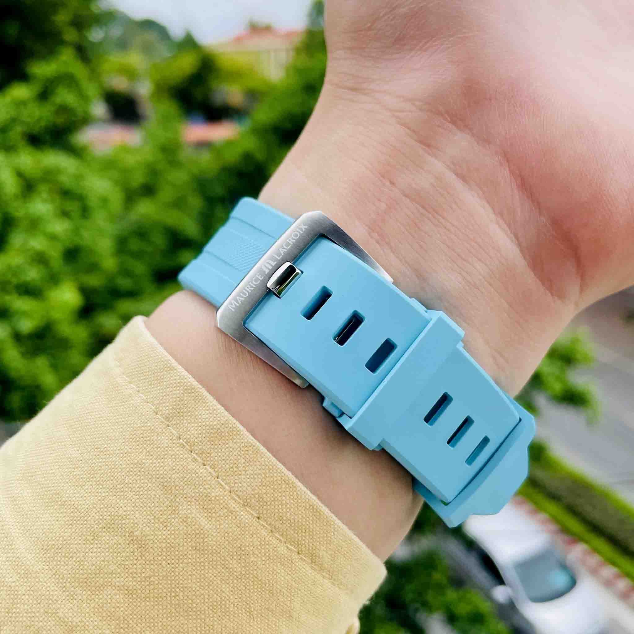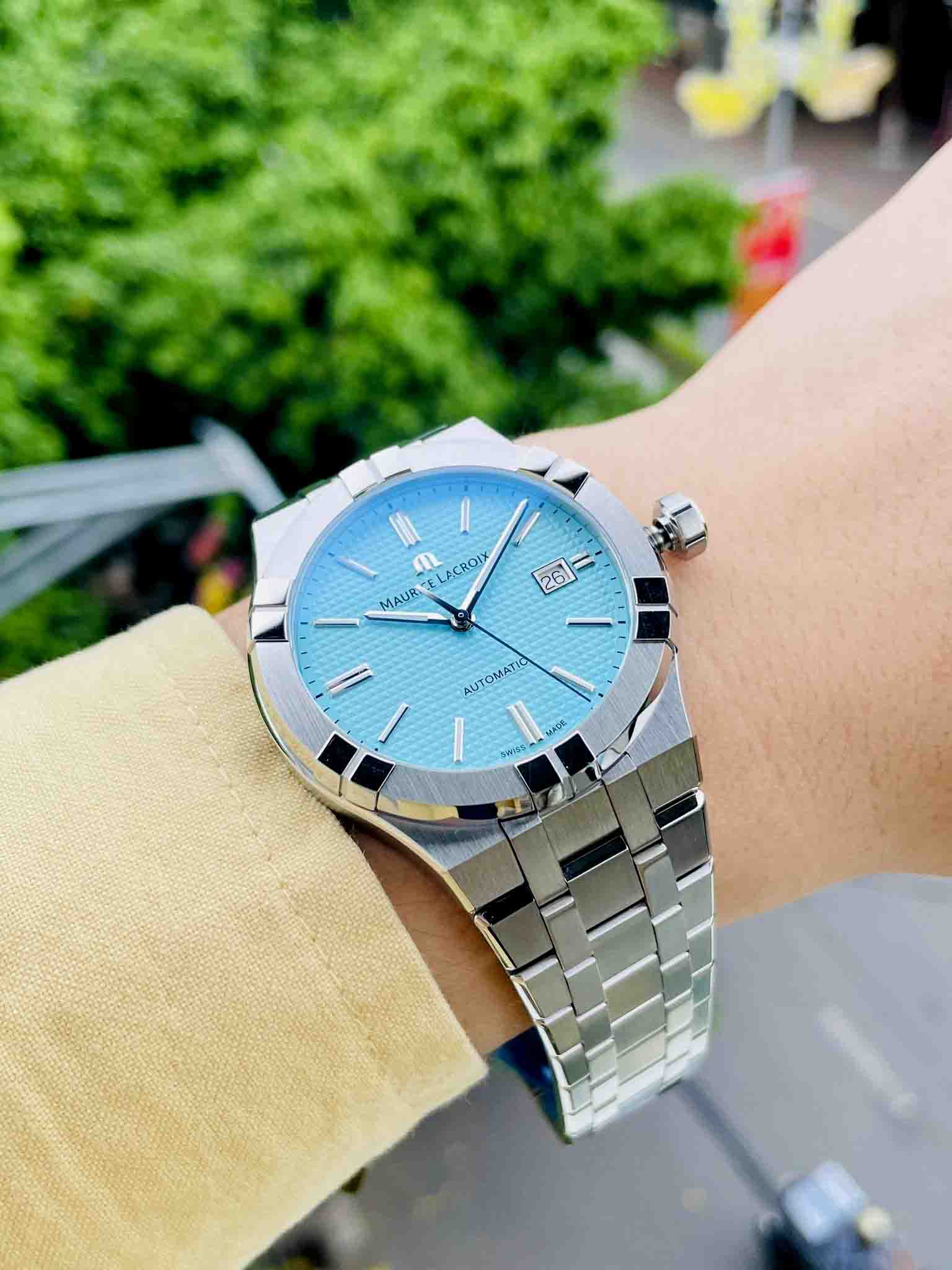 – Mặt dial xanh blue hot nhất, trẻ trung dễ phối đồ, vân Cotes de Geneve đặc trưng tuyệt đẹp