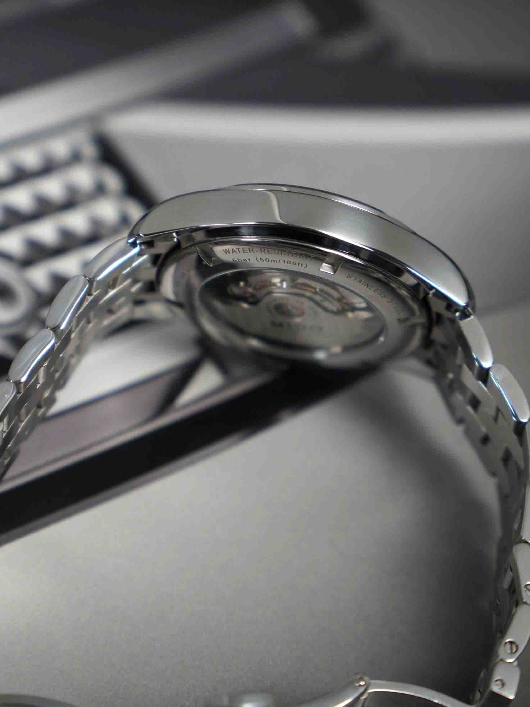 Dial xám cực dễ phối đồ, vân mặt số cuốn hút , kính sapphire phủ AR trong veo và cong nhẹ phô diễn hết vẻ đẹp dial