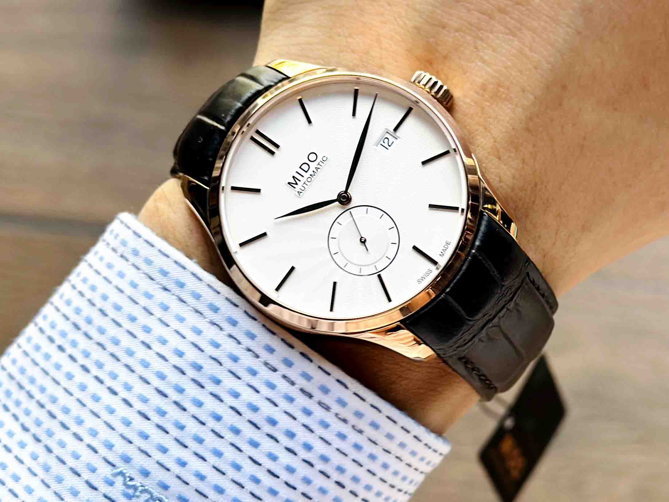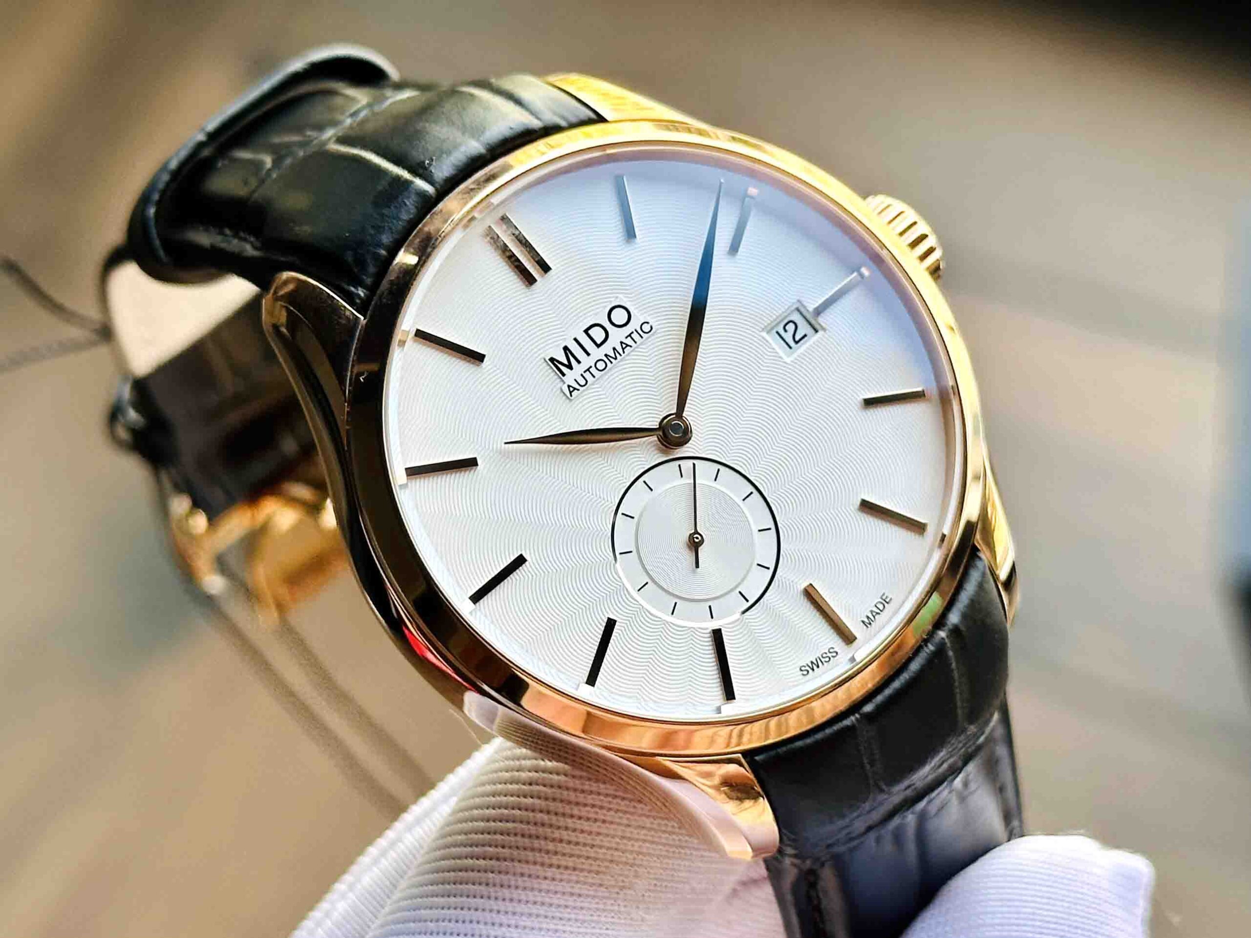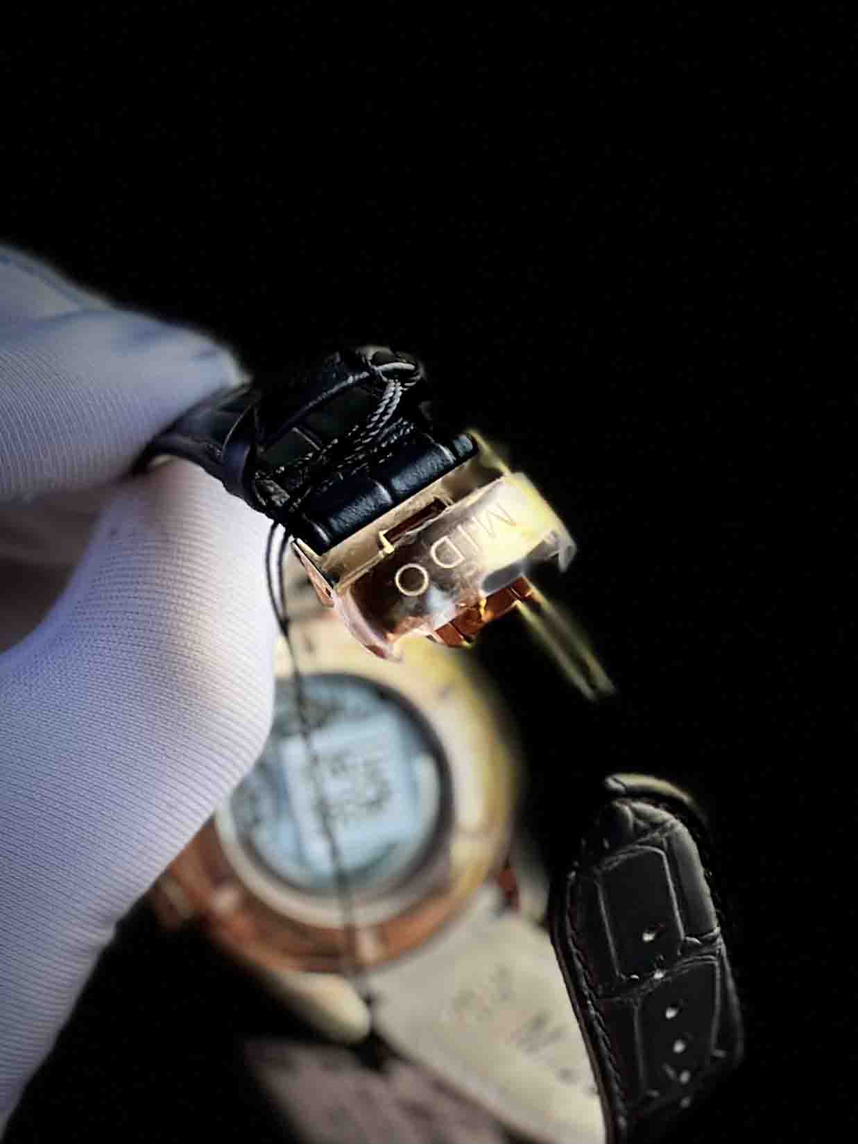 – Bộ truyền động Mido Caliber 80 với 25 chân kính, 21600 vph & 80h tích cót