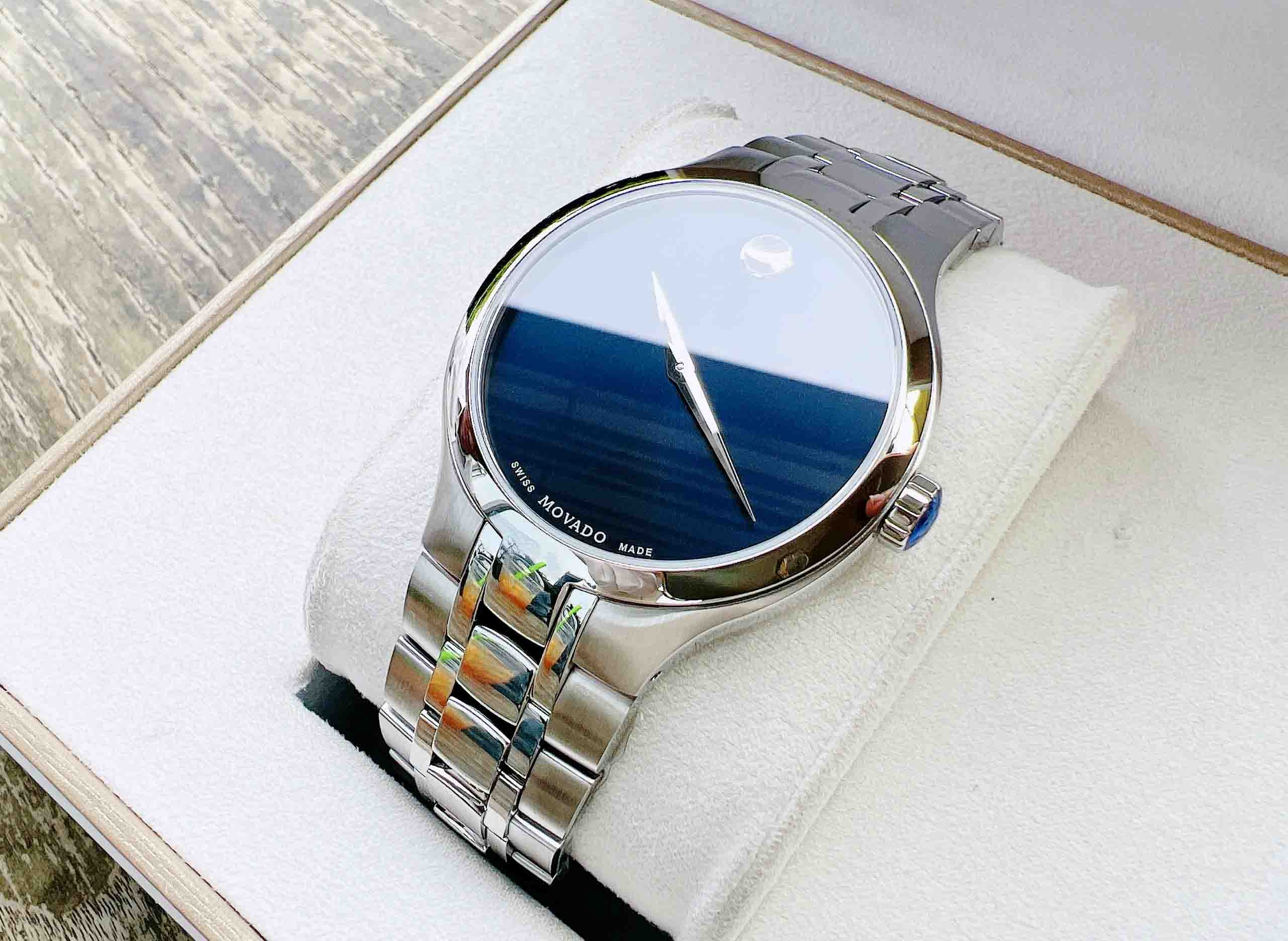 Quá đỉnh cho chiếc đồng hồ Thuỵ Sỹ này nhé, kính sapphire siêu bền kết hợp với mặt màu xanh dương siêu hot. Hàng có sẵn ship ngay.