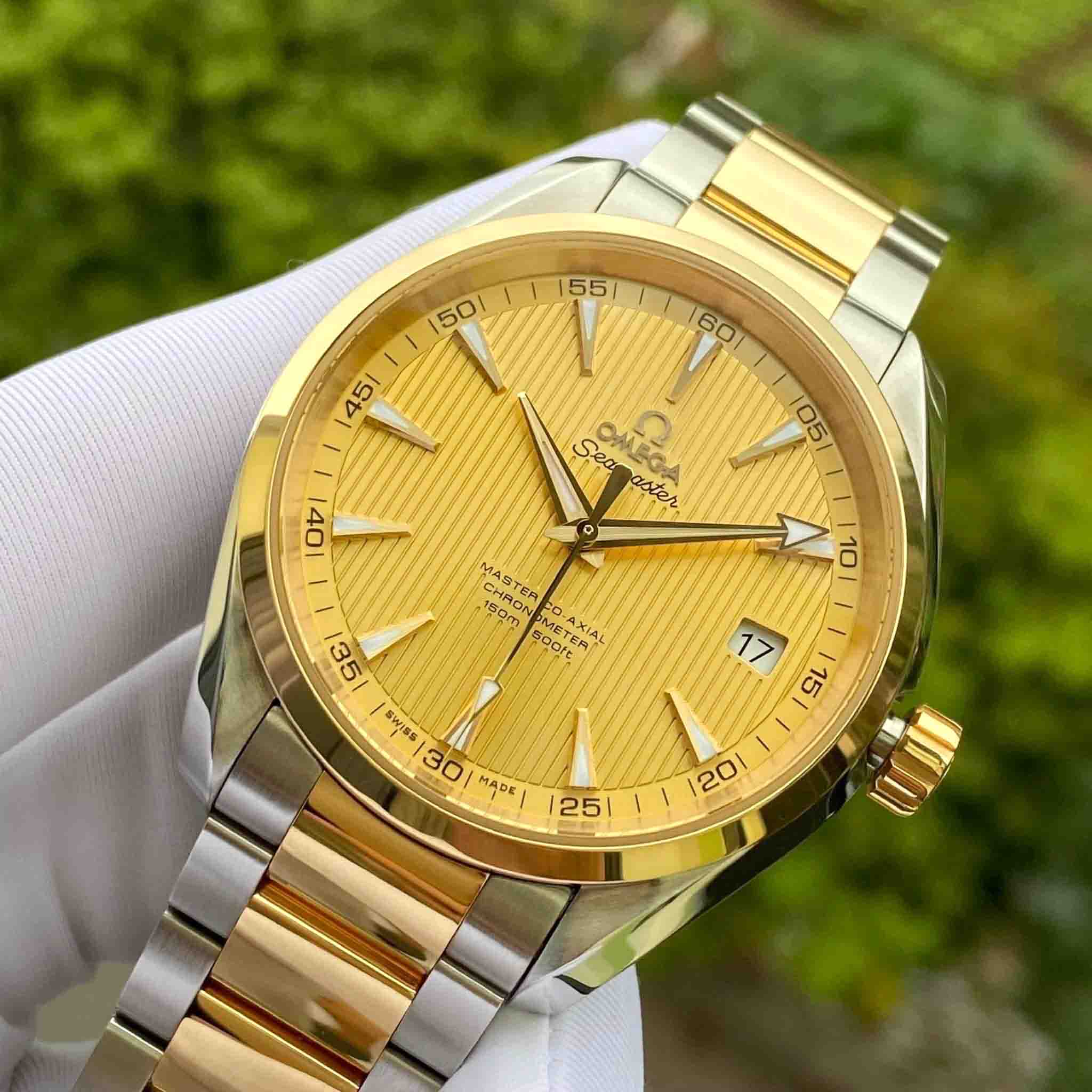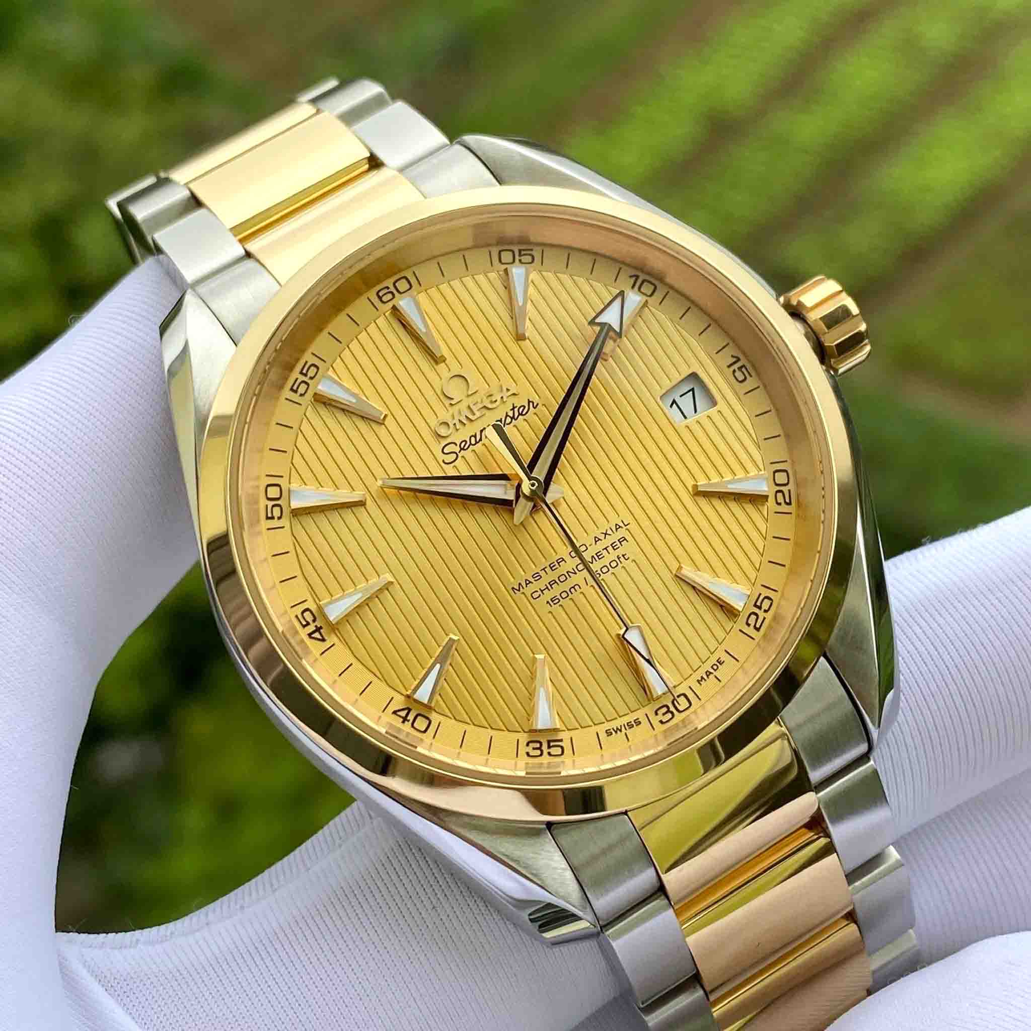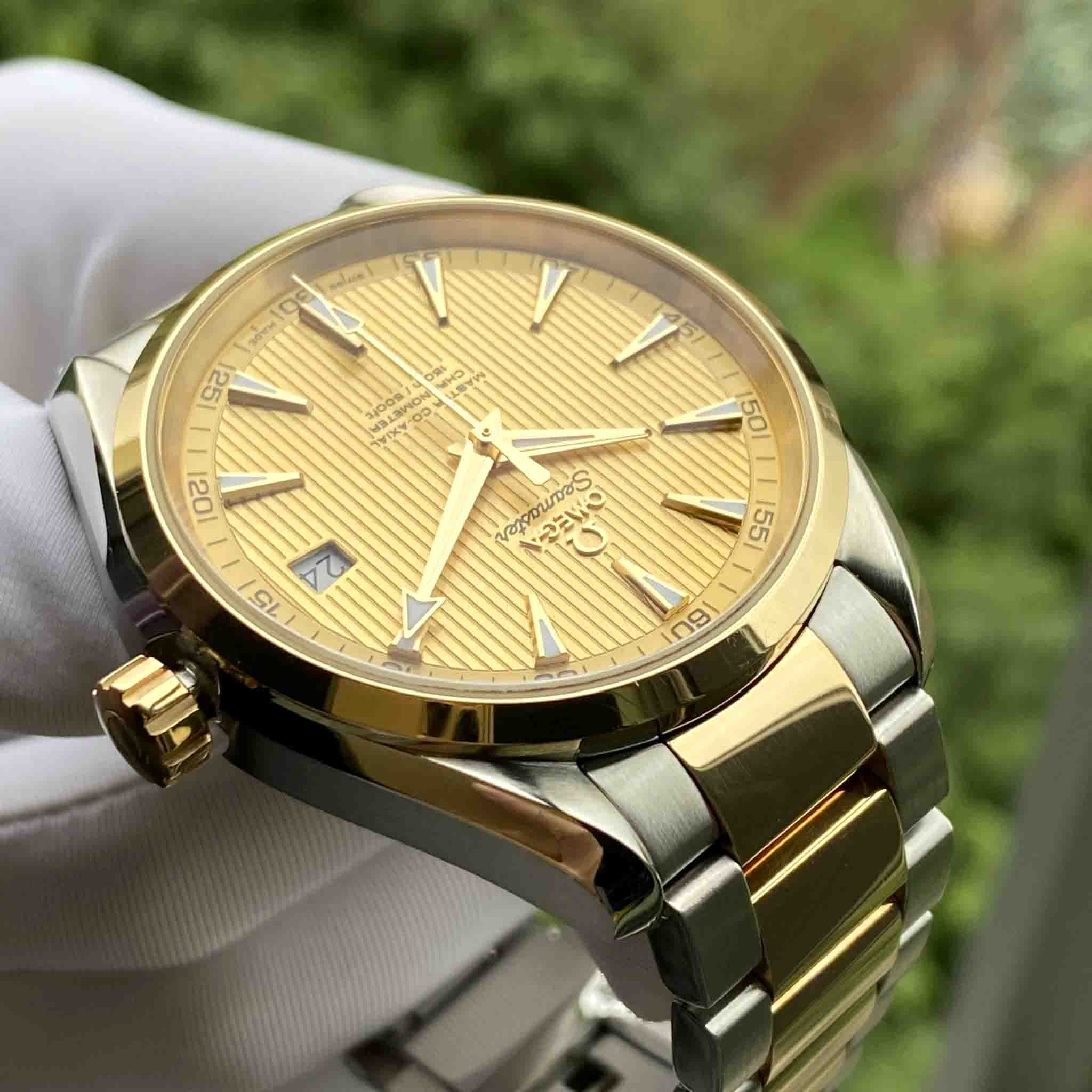 •Các chi tiết kim cọc số, niềng, núm xoay và dây Demi được làm bằng vàng khối 18K sang trọng