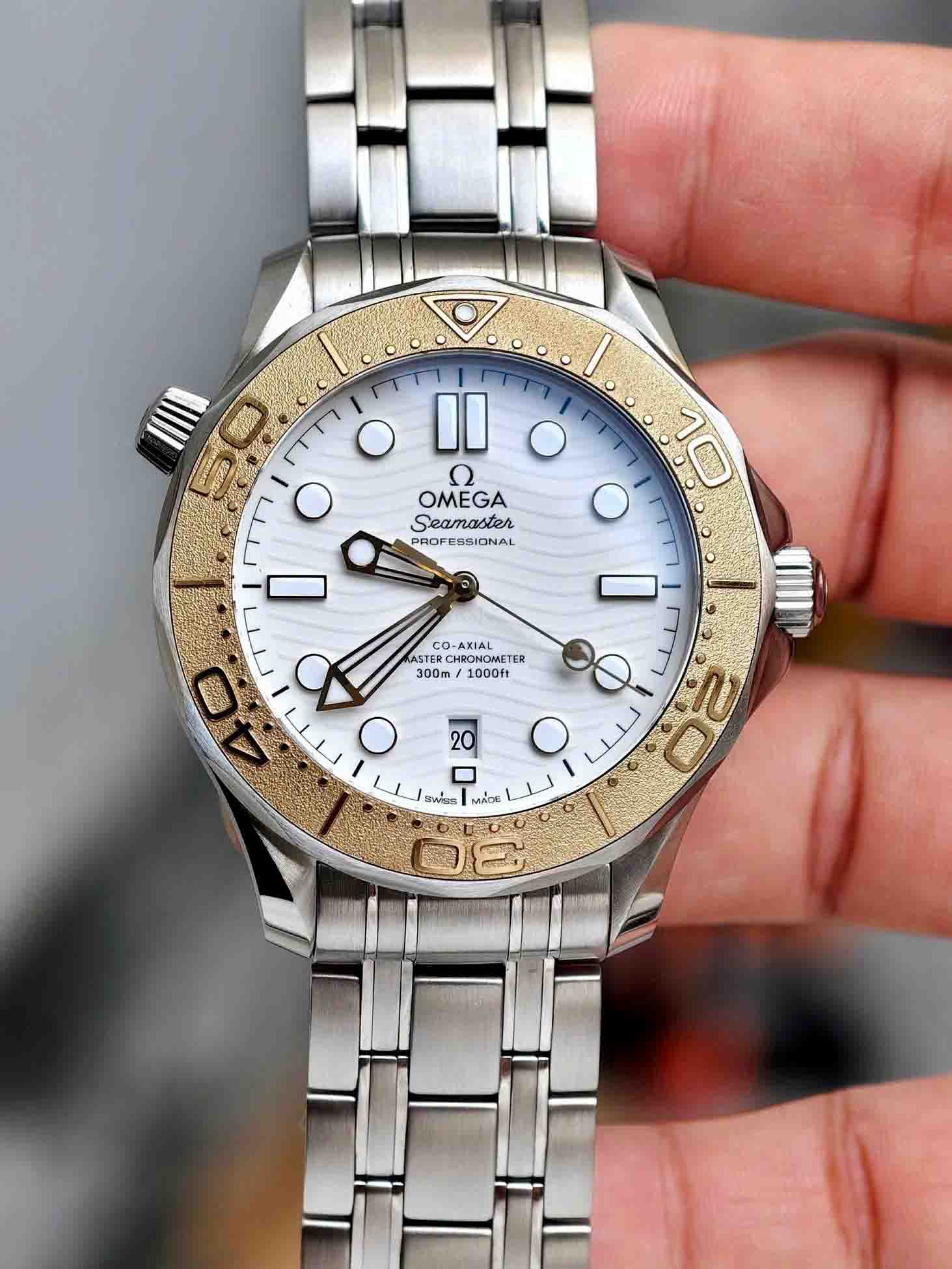 Là phiên bản đặc biệt rất đáng chú ý của dòng OSD 300M, được ra mắt để kỷ niệm Thế vận hội Paris 2024. Với thiết kế vỏ thép 42mm kết hợp bezel vàng Moonshine Gold 18K, tạo cảm giác sang trọng nhưng vẫn thể thao.