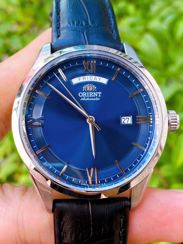 Orient RA-AX0007L0HB Day Date Blue Dial Đồng hồ nam dây da