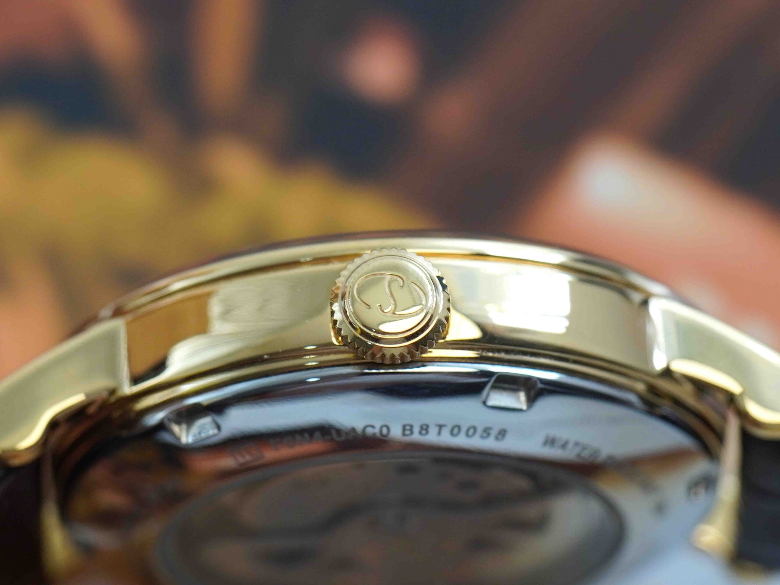 – Máy Auto Cal.F6N43 với 22 chân kính, hỗ trợ lên cót tay + Hacking stop cùng kim đo năng lượng dự trữ (power reserve)