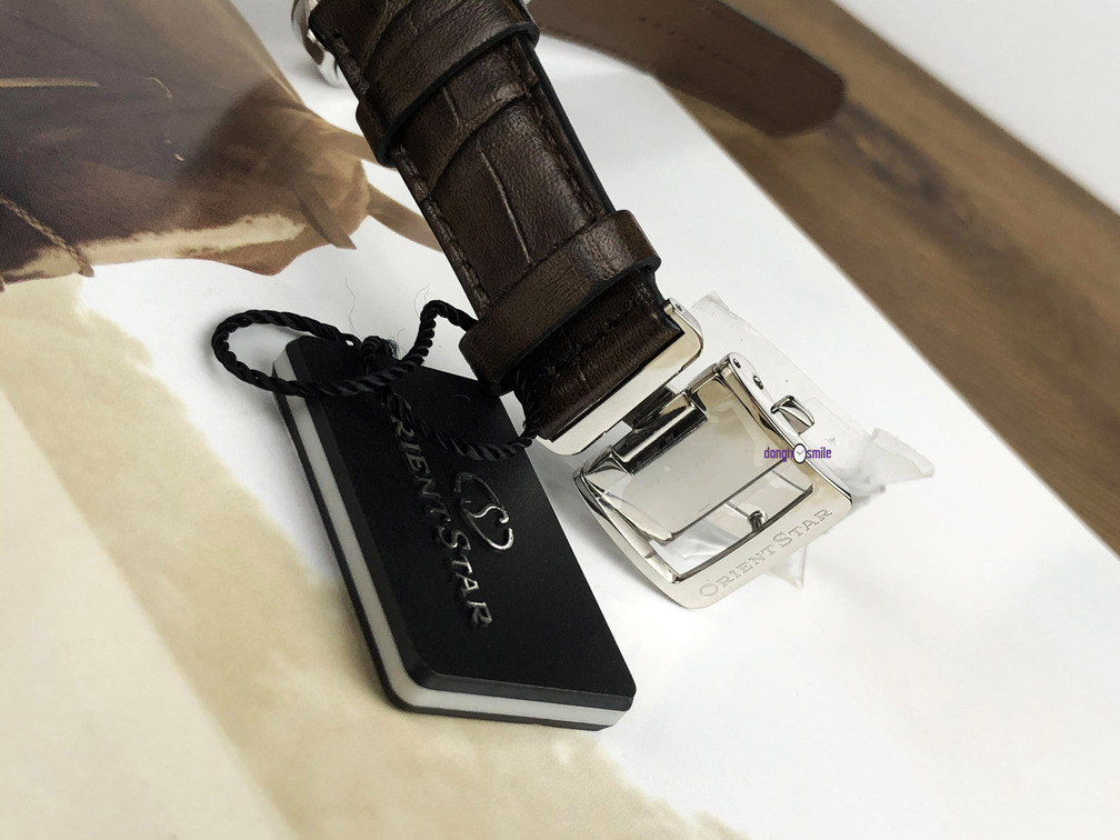 Dây da cá sấu nâu kết hợp với khóa bướm sang trọng