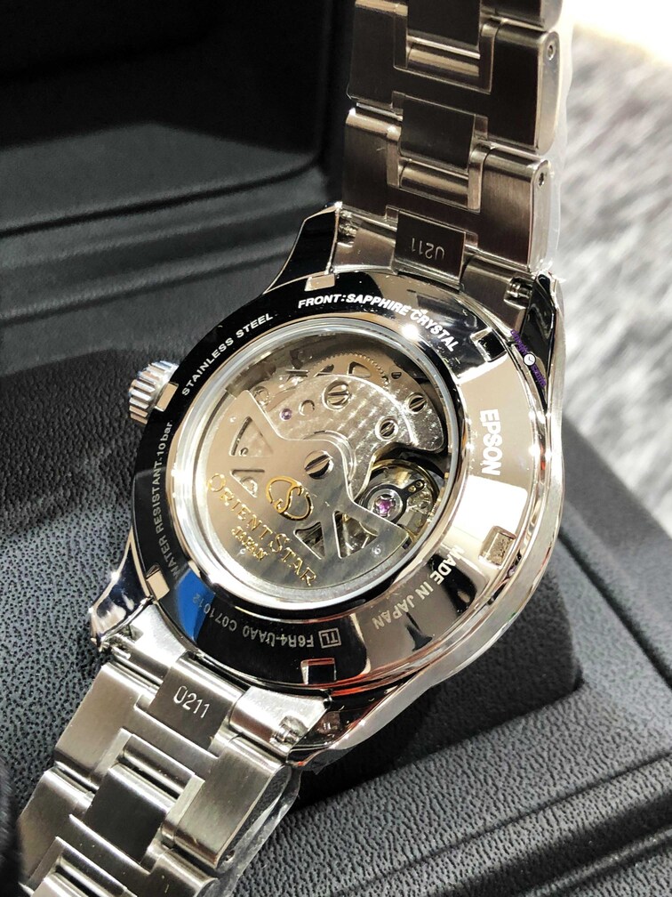 Ngay mặt sau của đồng hồ là một mặt kính trong suốt giúp chúng ta có thể thấy được các bộ phận đang làm việc rất hăng say.Vì là automatic nên chỉ cần bạn đeo lên tay và hoạt động thì đồng hồ cũng sẽ nạp năng lượng cót.