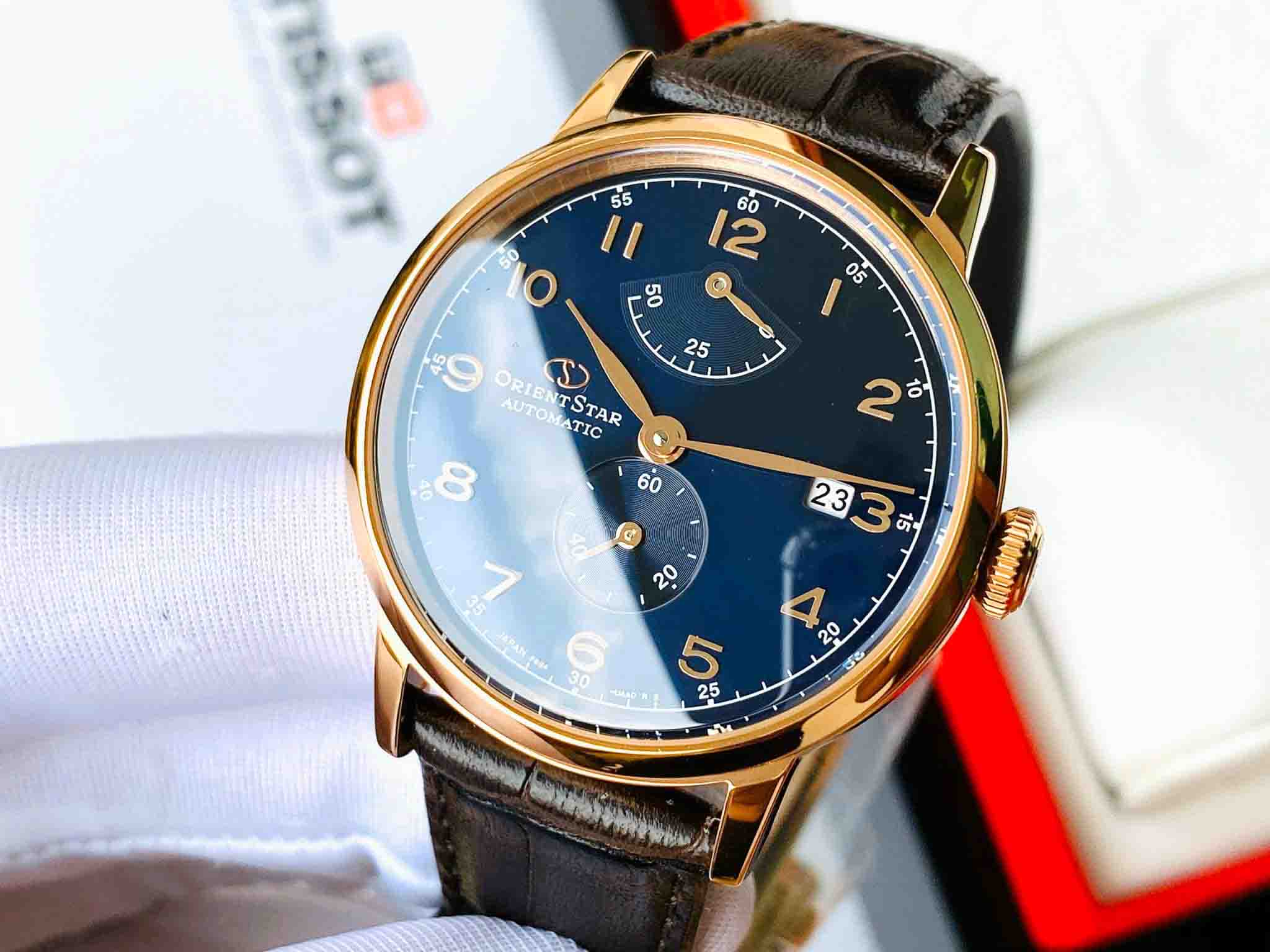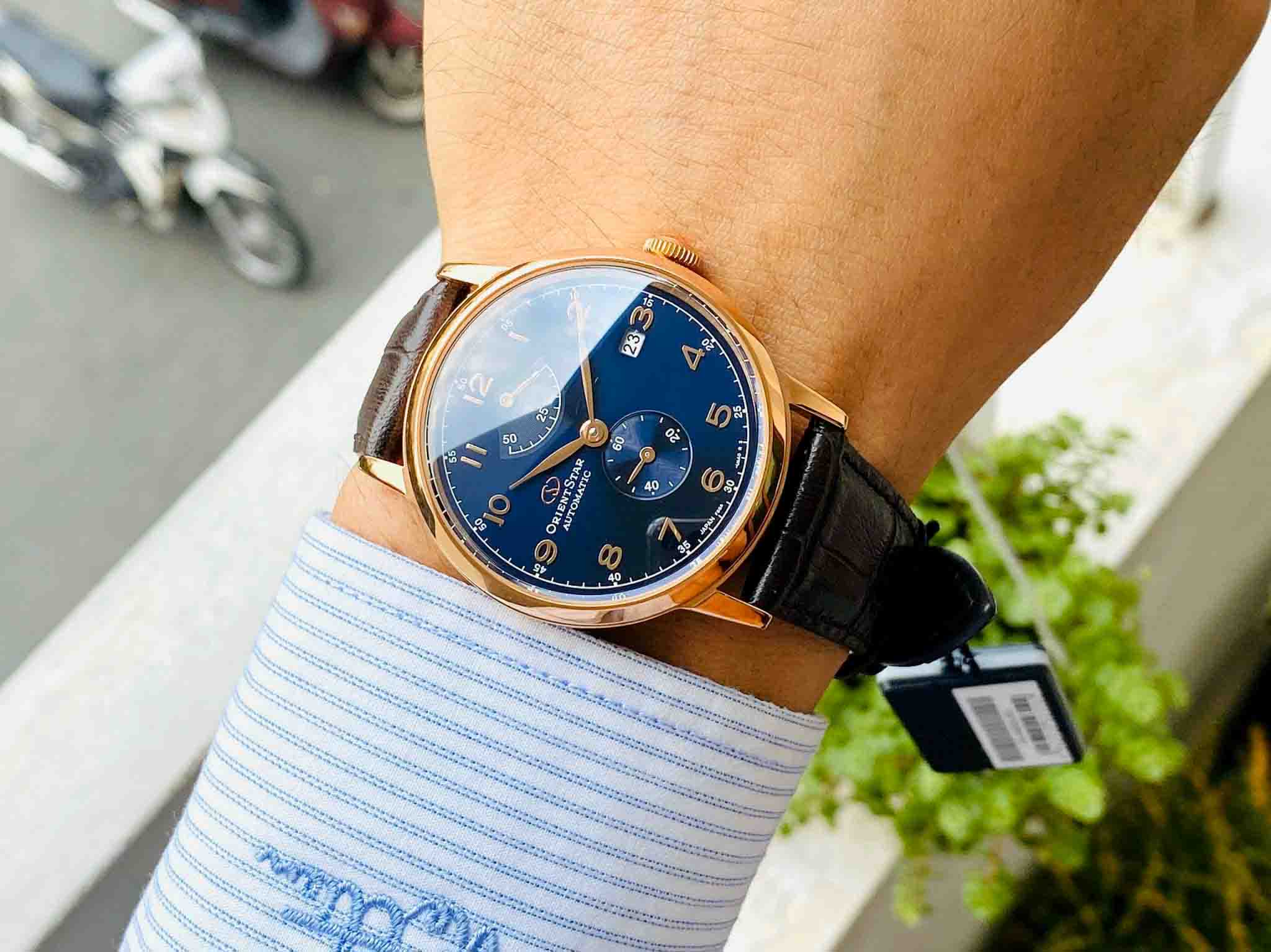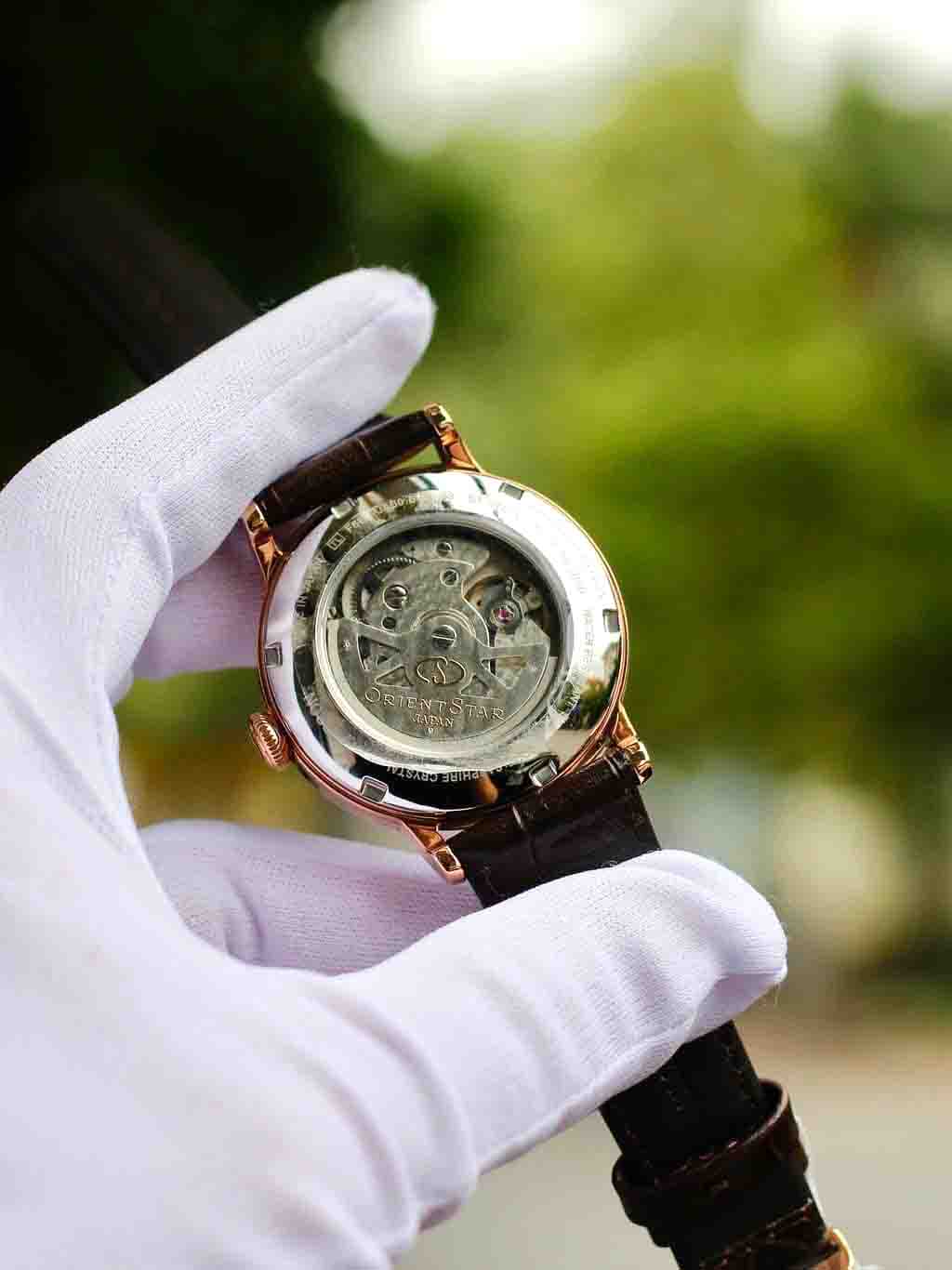 Máy Automatic inhoues cao cấp nhất nhà Orient dự trữ năng lượng 50h, hỗ trợ lên cót tay