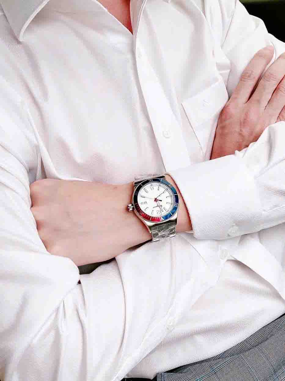 • Kim giờ màu đỏ cùng vạch giờ màu trắng nổi bật trên nền đồng hồ màu trắng