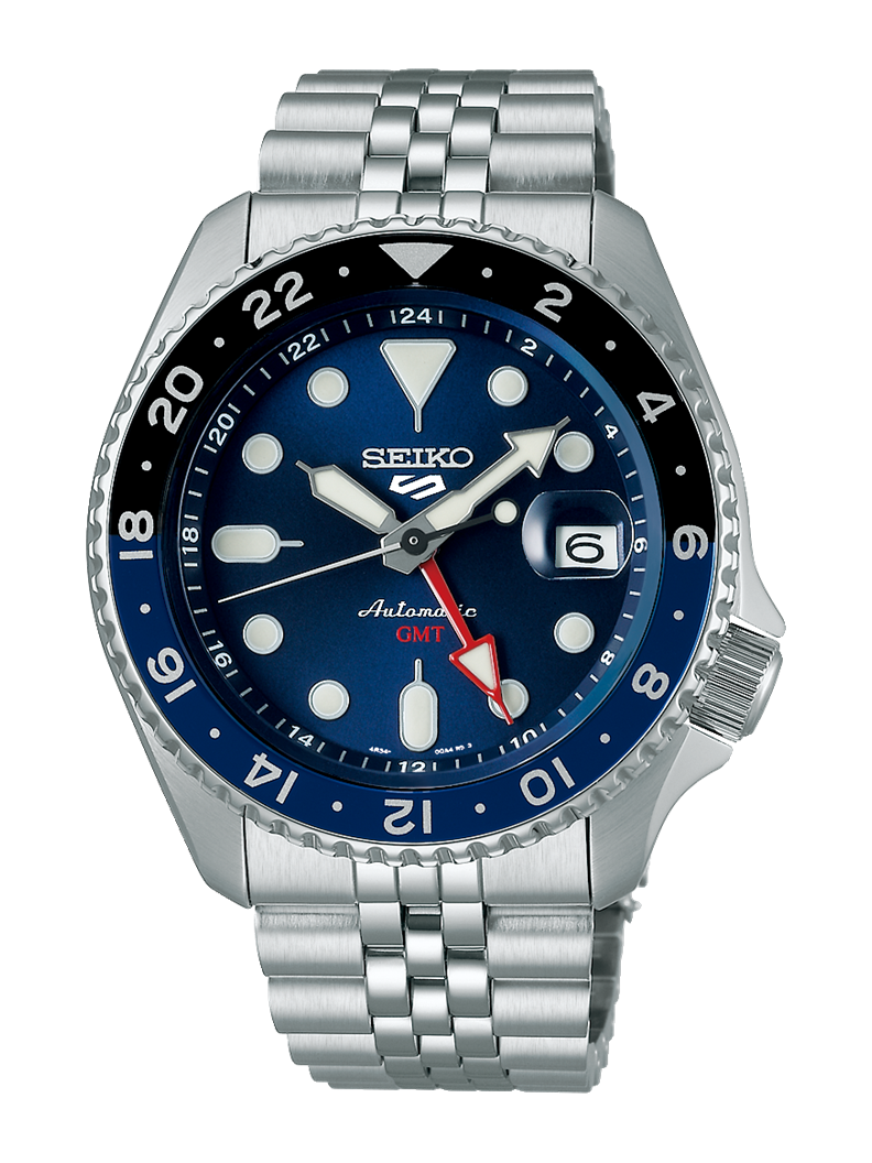 – Model mới nhất 2023 của Seiko với thiết kế GMT độc đáo và cực chất cùng bộ dây Jubilee cực ôm tay, ô kính lúp lịch ngày tiện lợi