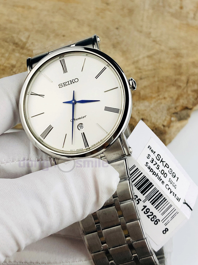 Seiko premier SKP391 kính sapphire dây inox đúc