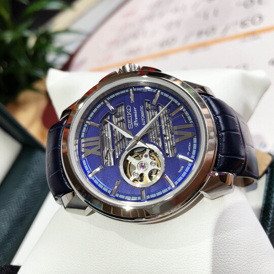 Đồng Hồ Nam Seiko Automatic SSA399J1 Dây Da Vỏ Trắng Mặt Xanh dương Sapphire Một mẫu Dresswatch đến từ Sei.ko với thiết kế mới lạ độc đáo và và bắt mắt. Thiết kế Skeleton tinh xảo lạ mắt cùng với góc 9h là ô hở van tim lớn giúp cho phép quan sát chuyển động của cỗ máy thời gian