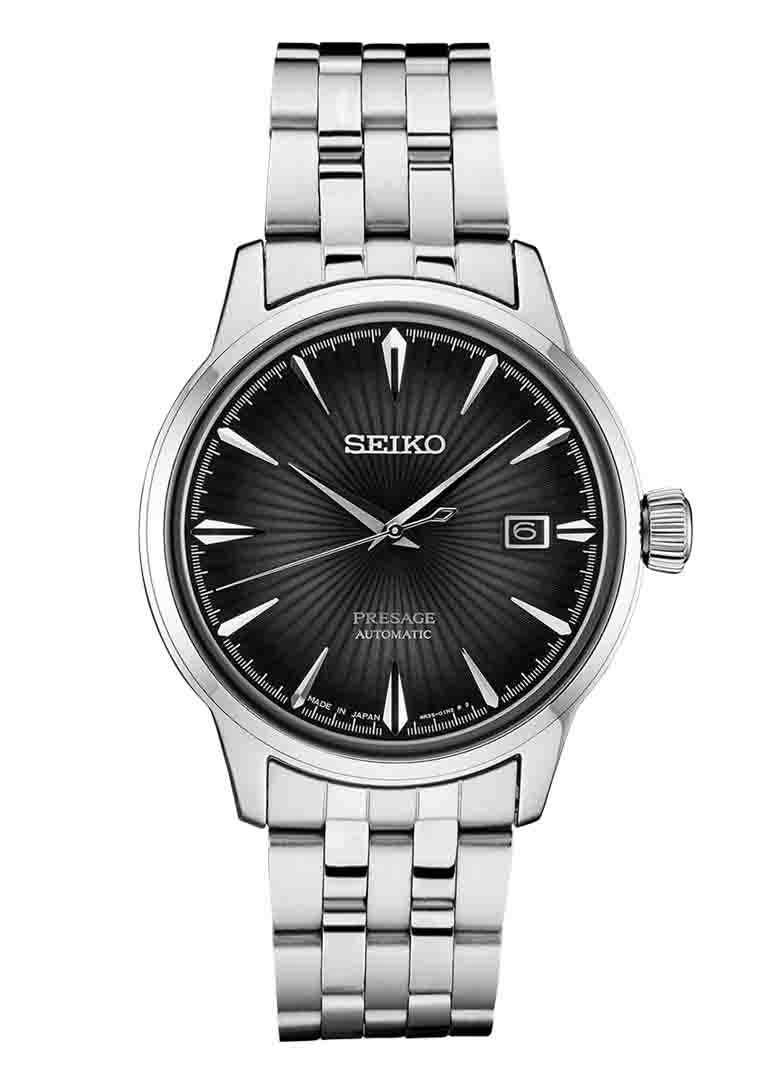 ▪Giống như các sản phẩm cùng dòng, SRPE17J1 nổi bần bật với dial chải tia cocktail cùng vòm kính cong quyến rũ.