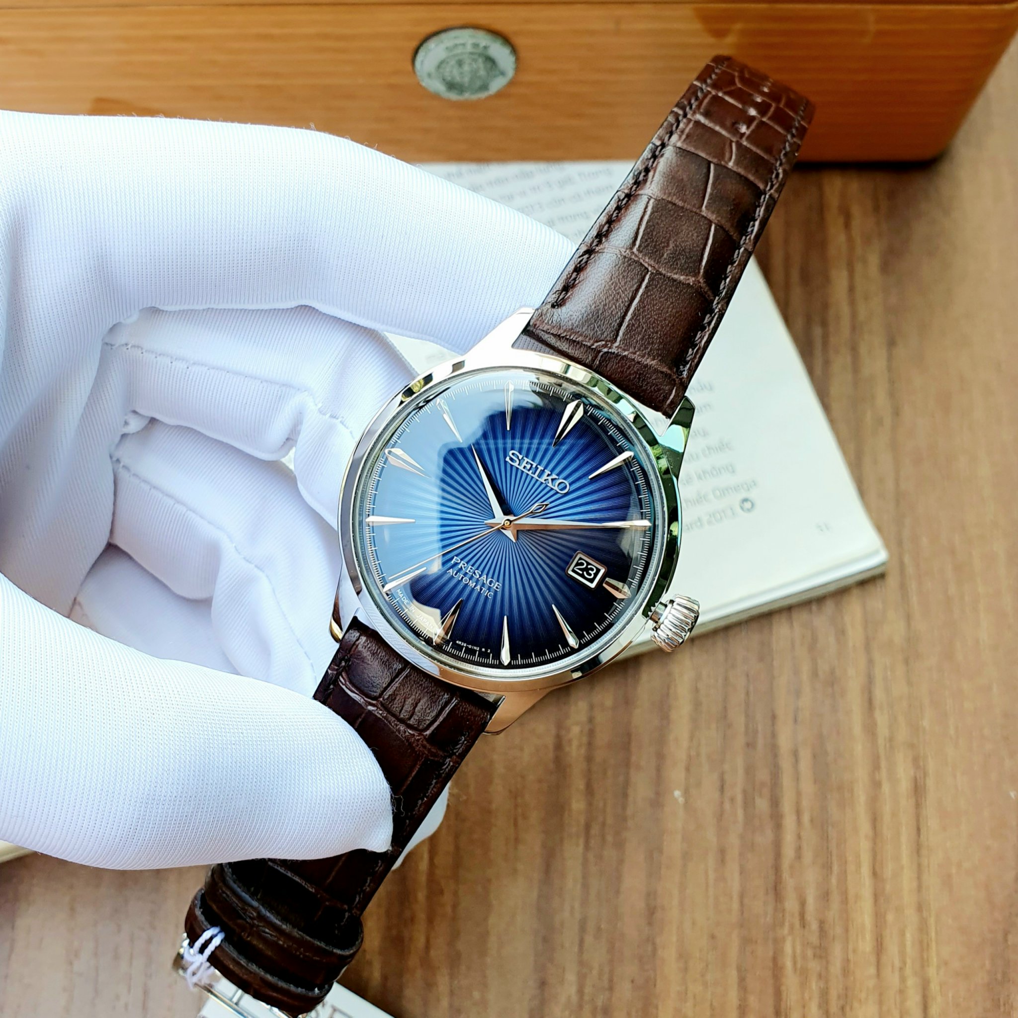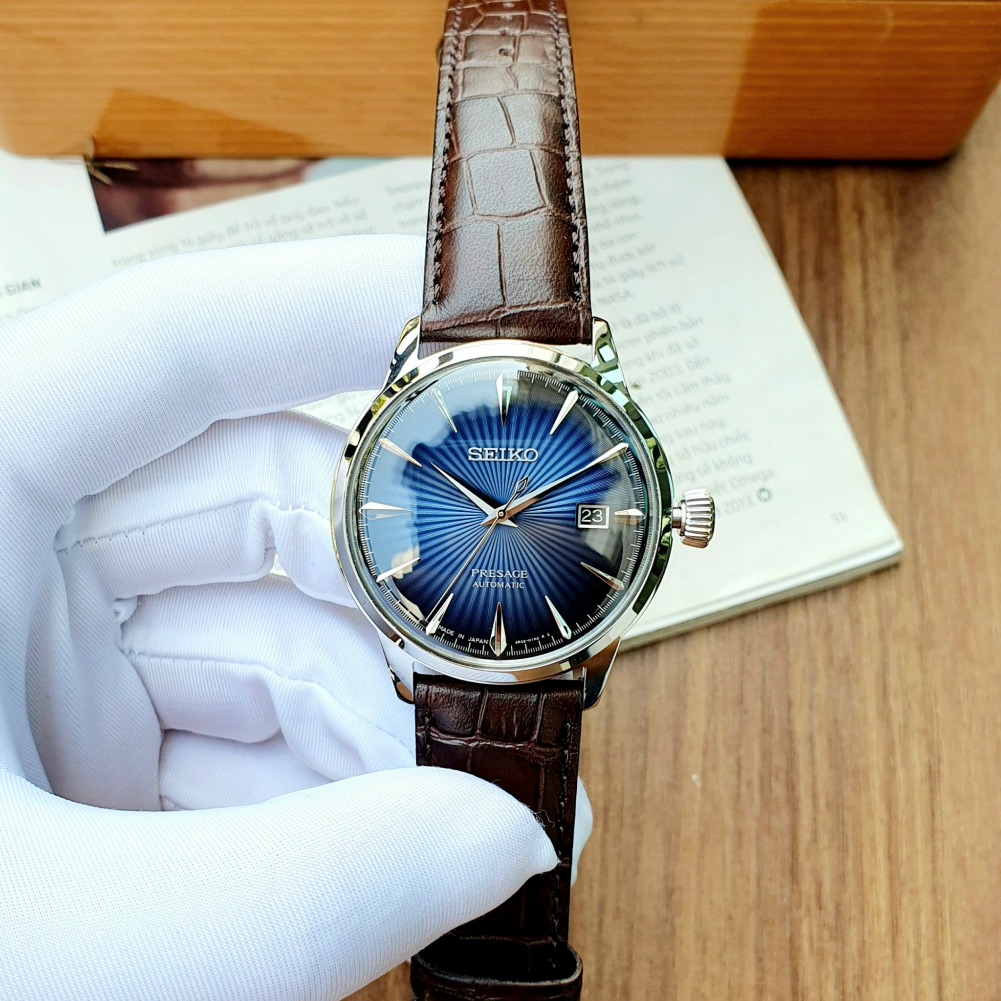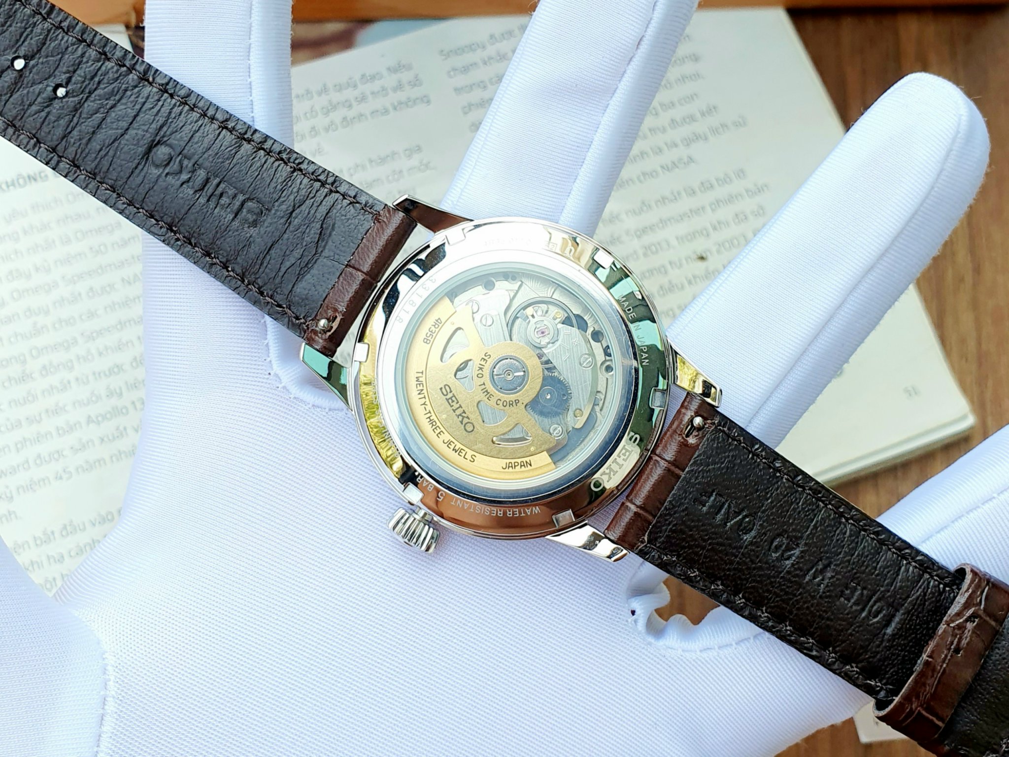 – Loại máy: Automatic (cơ) 4R35B (có hand winding và hacking stop)