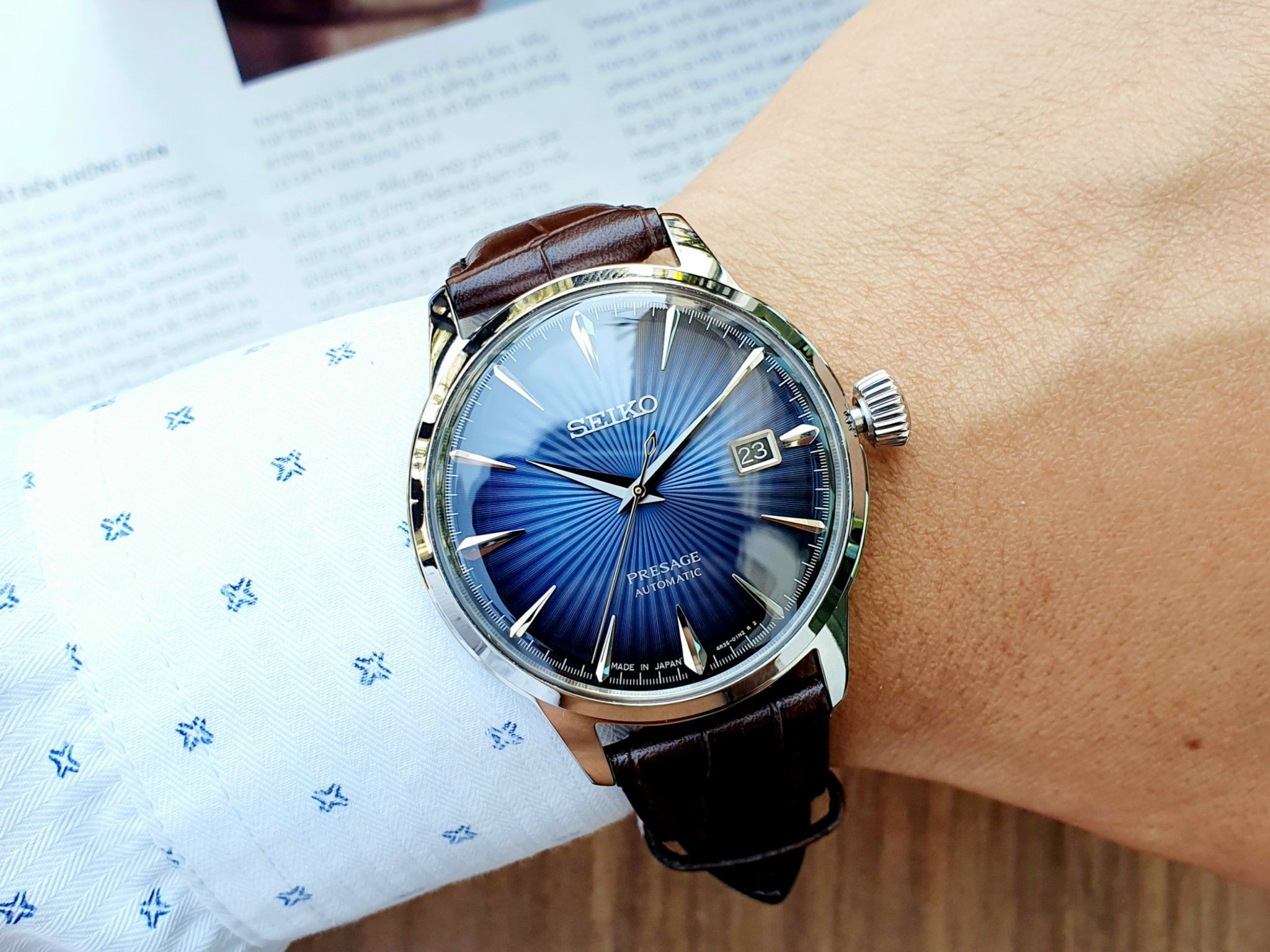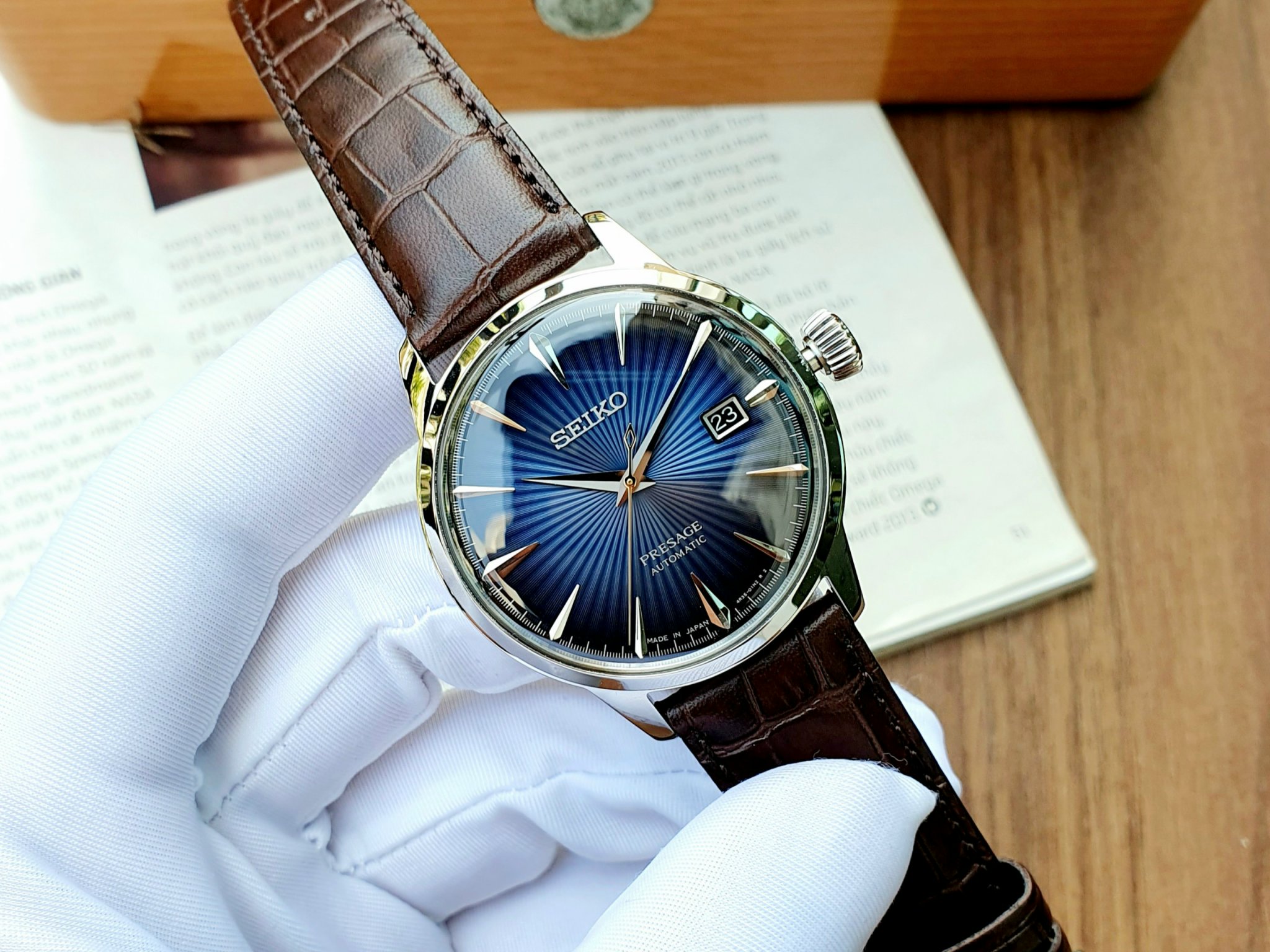 SEIKO Presagge Cocktail SRPK15J1 Made in Japan /bản nội địa nhật /Sắc xanh cocktail tinh tế