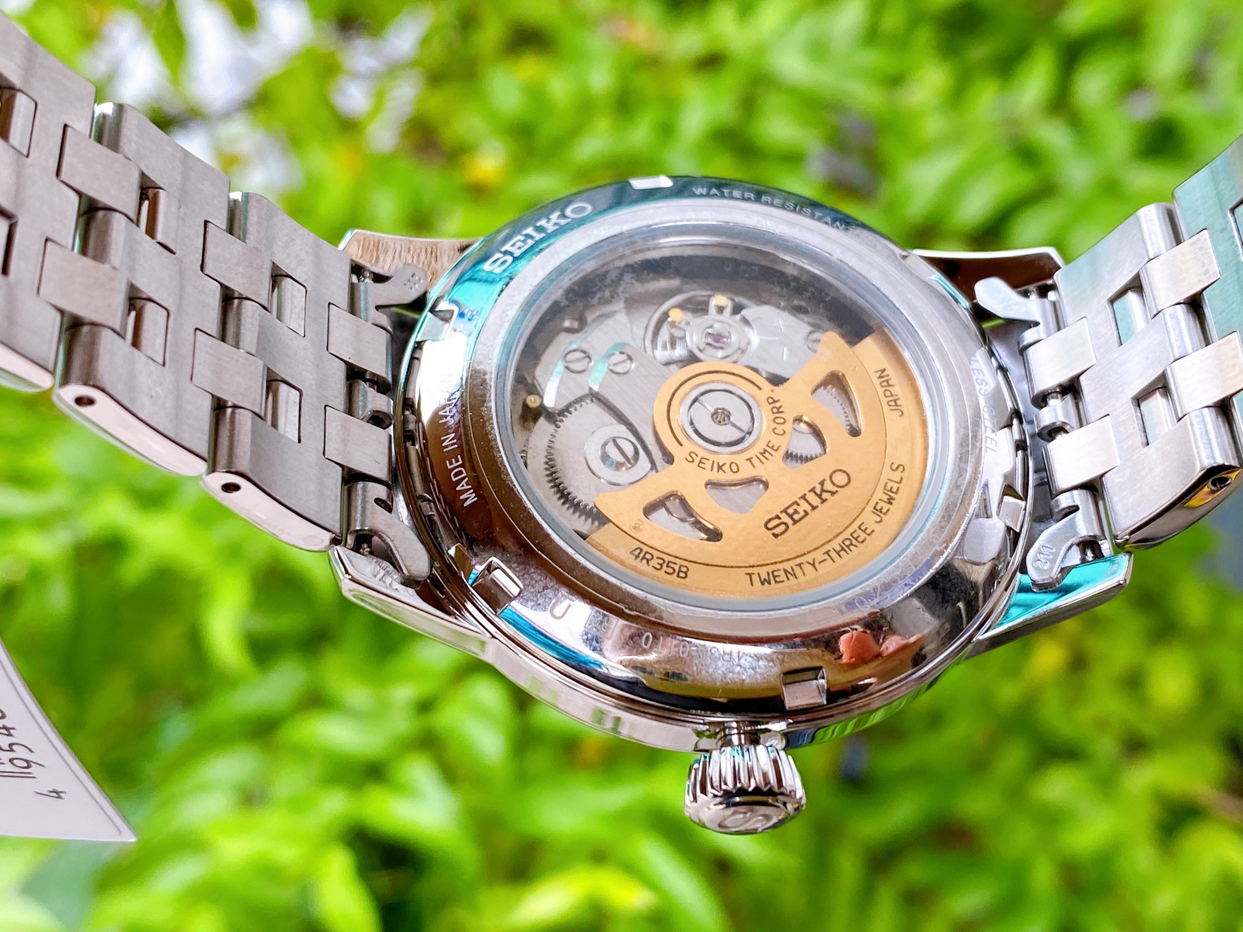 – Loại máy: Automatic (cơ) 4R35B (có hand winding và hacking stop)