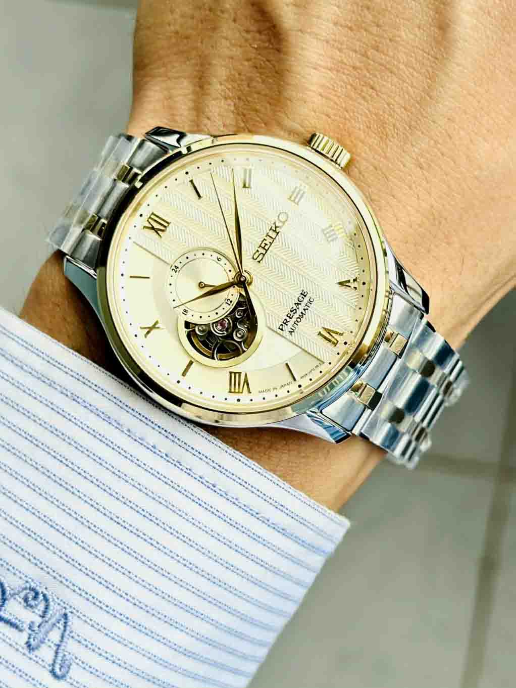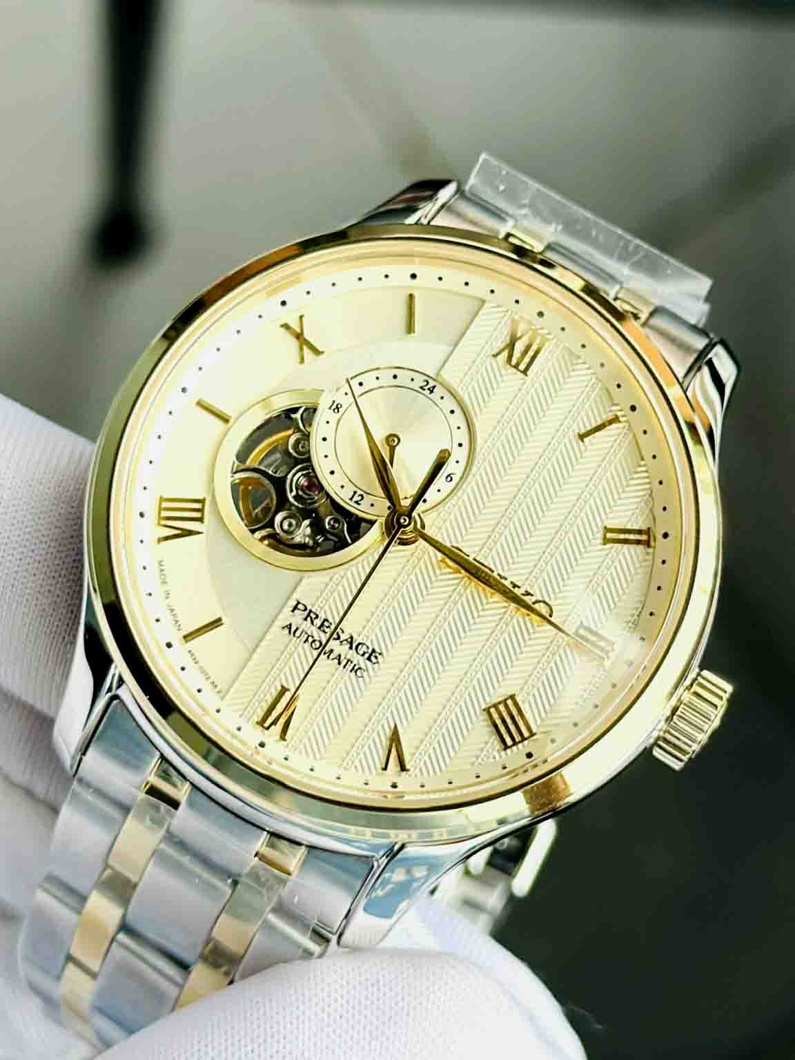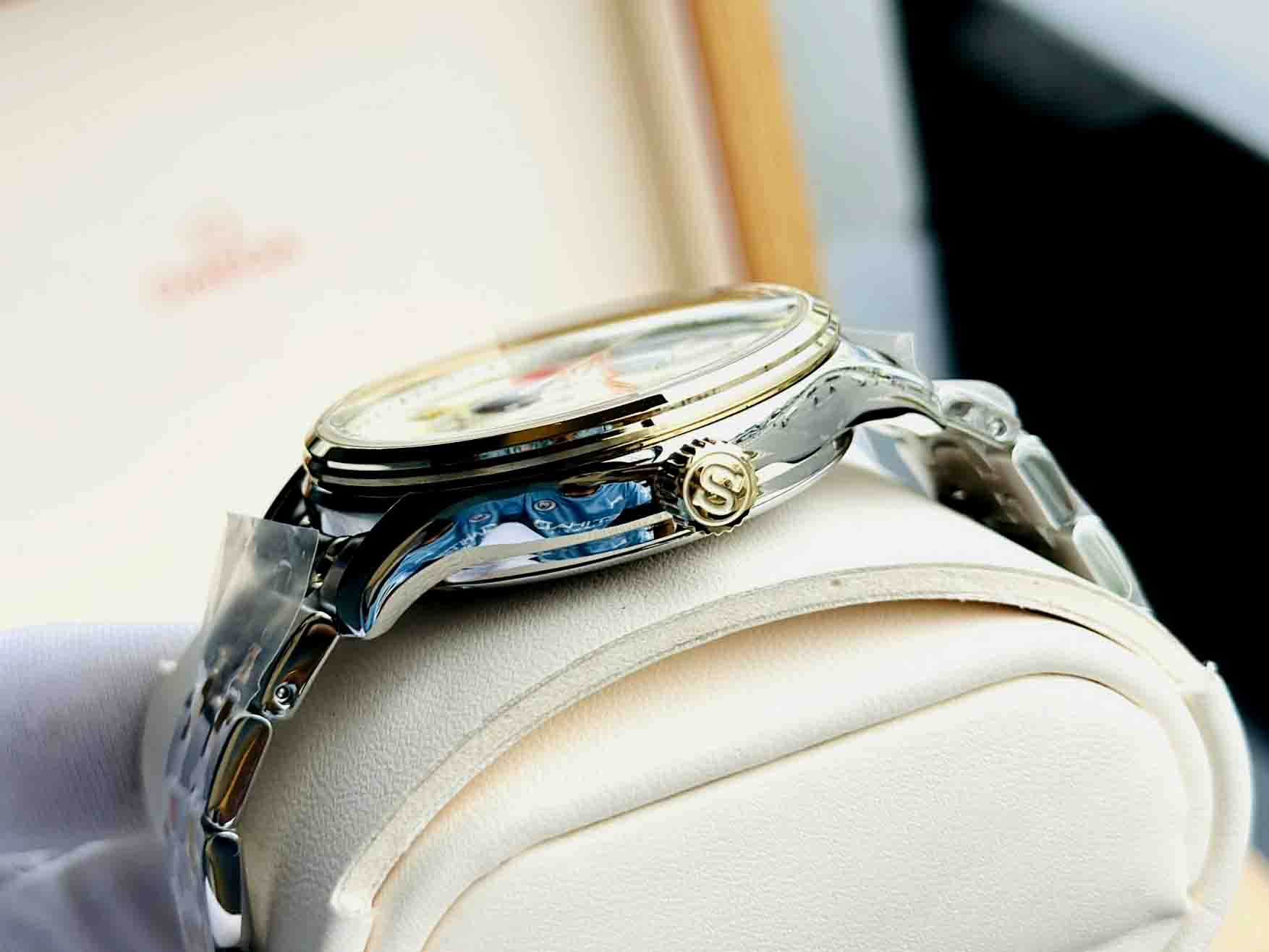Mặt số Vàng Gold cực hiếm kết hợp dây đeo demi sang trọng nam tính, dây thép đúc cao cấp chắc chắn