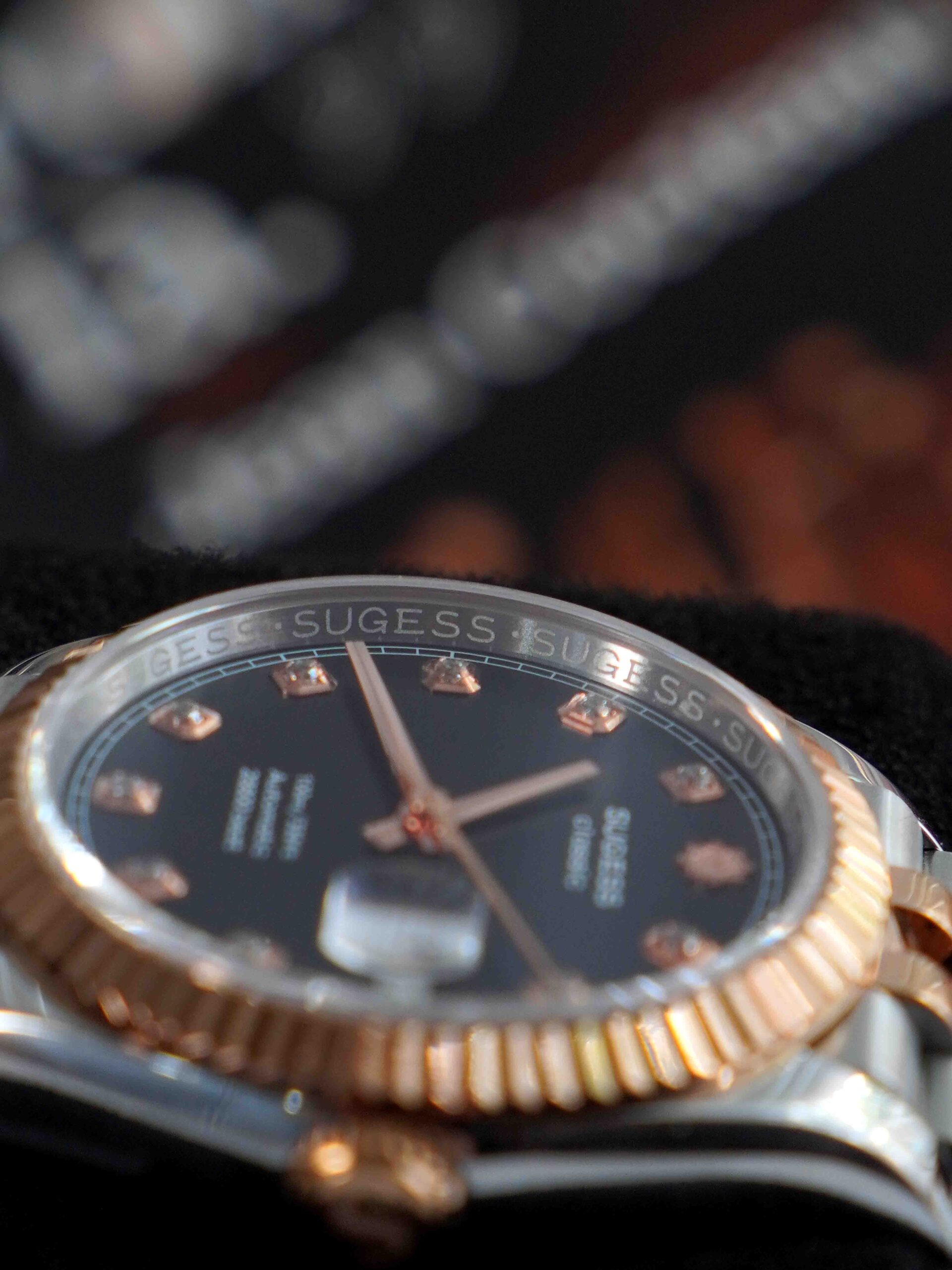 _ Dial đen chải tia mịn chuyển màu cực tốt , cọc đính đá bắt sáng tốt