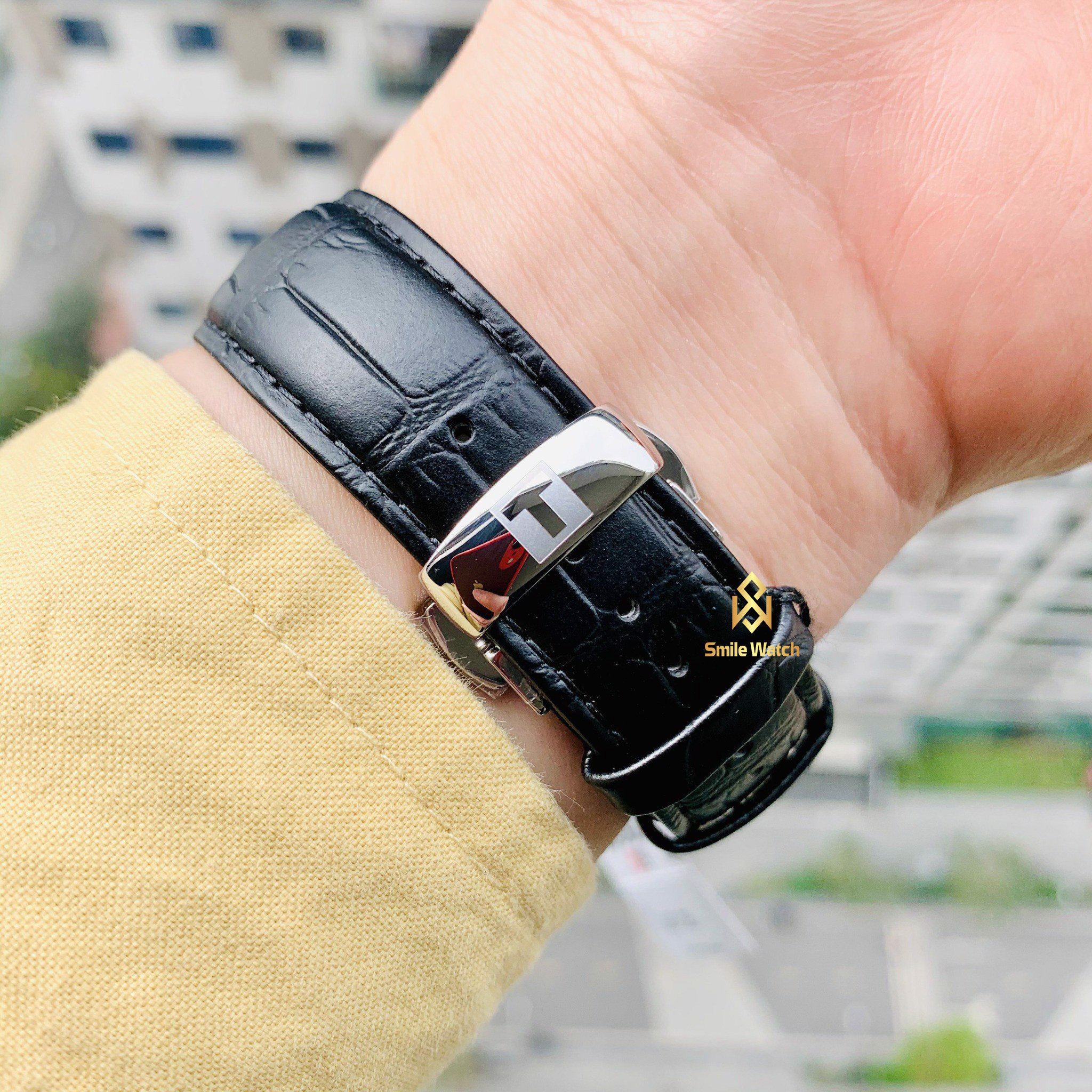 – Dây da nâu đi kèm khóa bướm tiện dụng