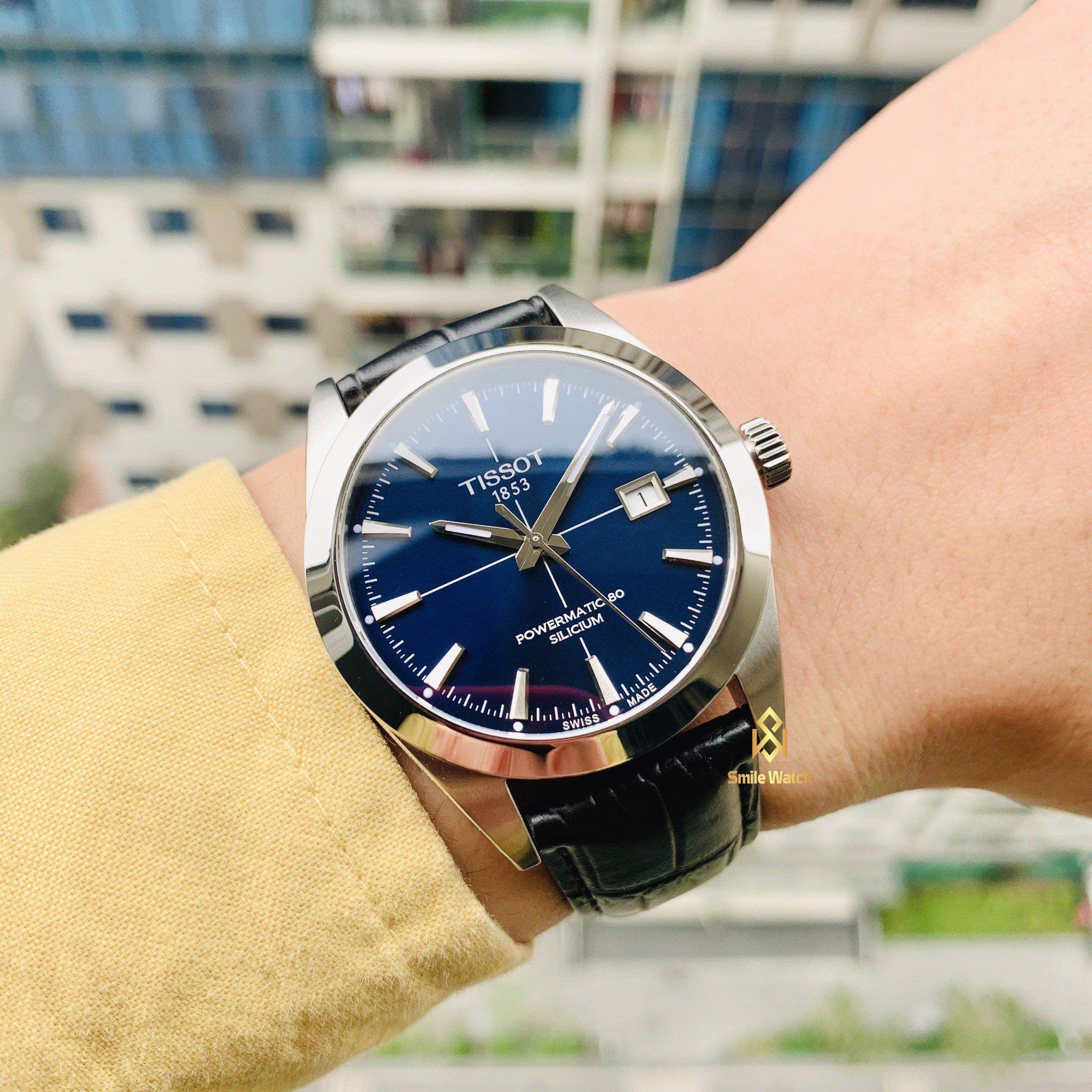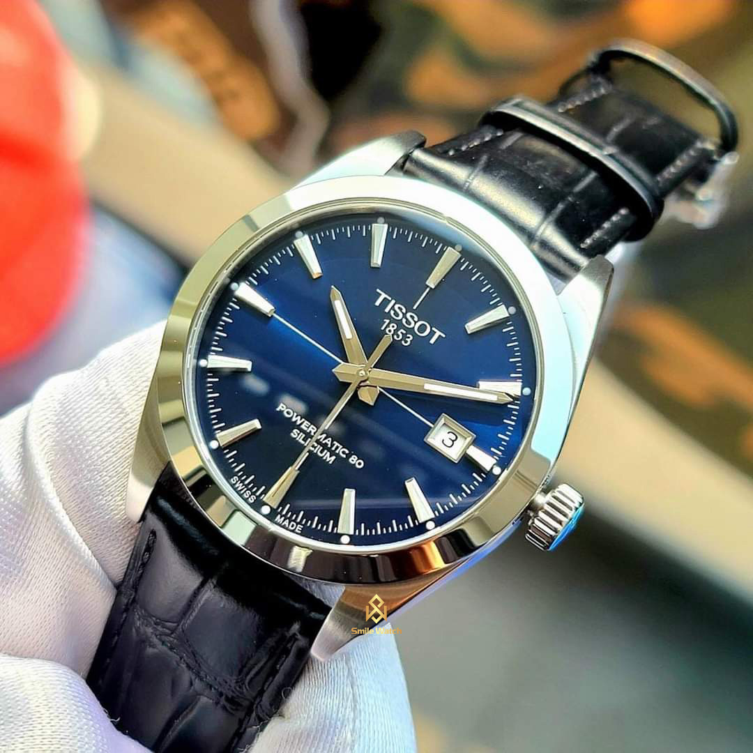 Tissot Gentleman Powermatic 80 Silicium – T127.407.16.041.01 Model mới đến từ thương hiệu Tis.sot với thiết kế nam tính, trẻ trung, rất hợp với các quý ông (Gentleman) Dial Blue trẻ trung độc đáo chải tia Sunbrust rất đẹp mắt