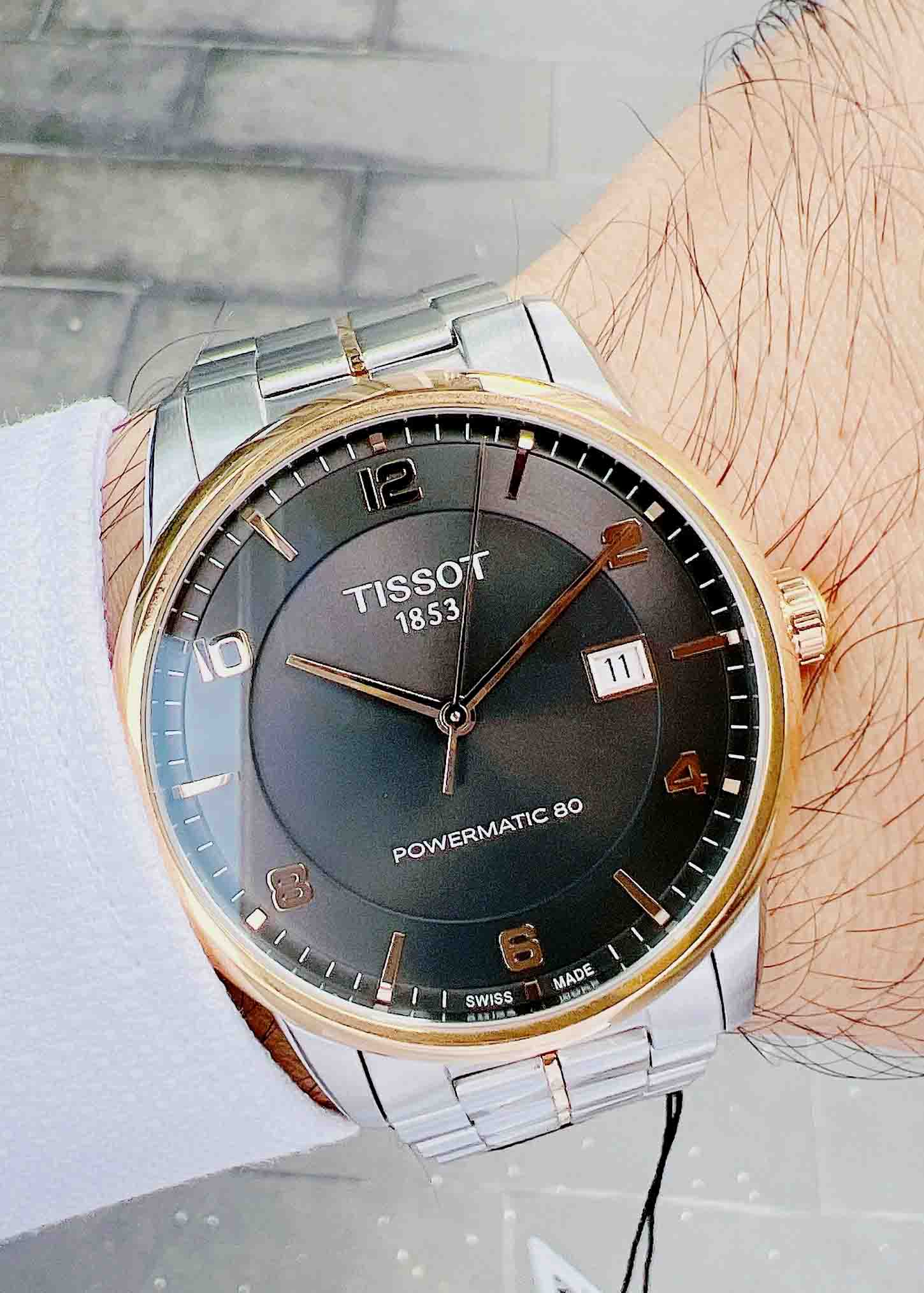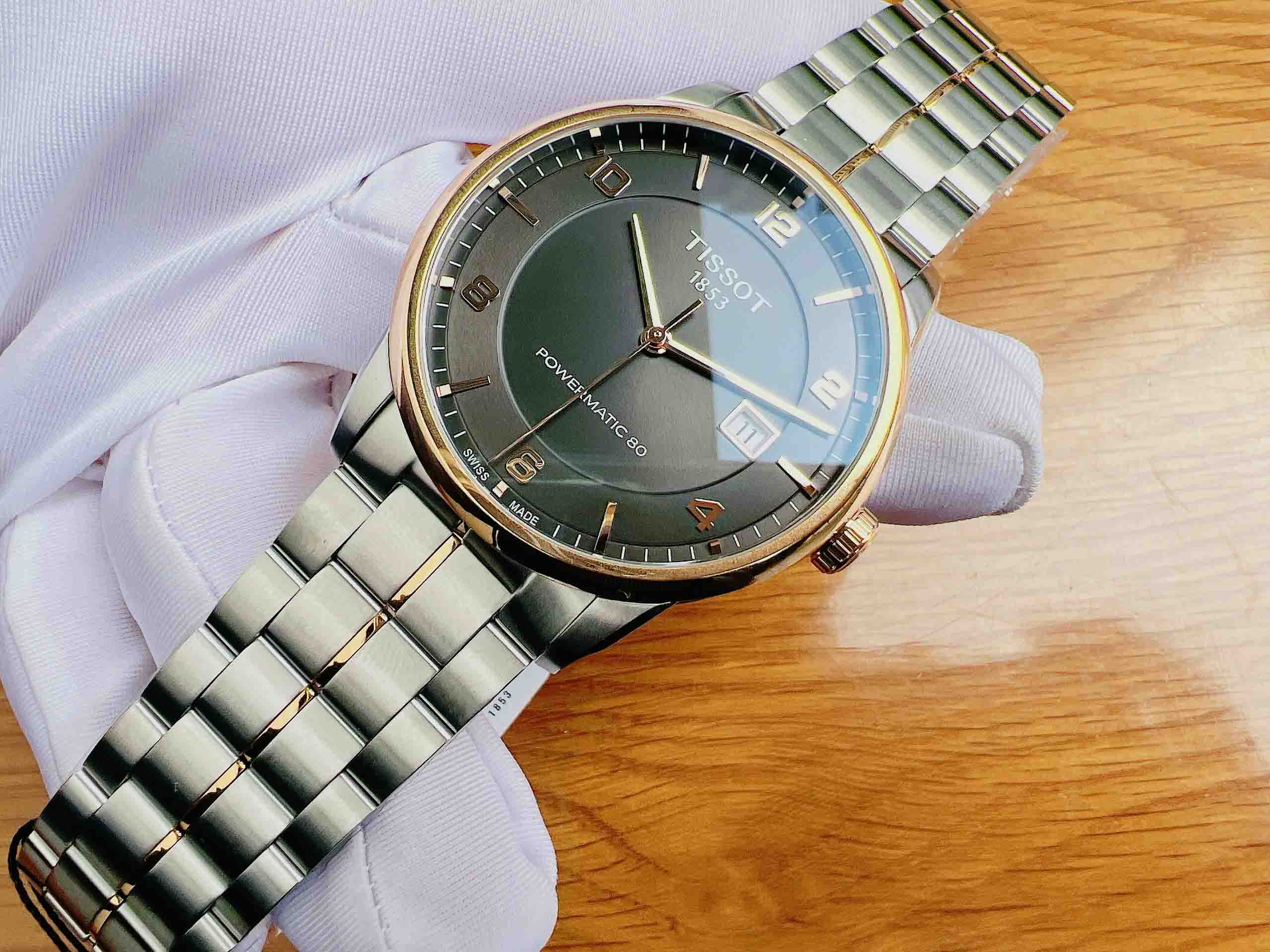 Đồng hồ nam Tissot T-Classic Luxury Powermatic 80 T086.407.22.067.00. Tông màu demi bạc và vàng hồng lên tay sang trọng. Vỏ thép không gỉ với vòng đeo tay bằng thép không gỉ hai tông màu (tông bạc và vàng hồng PVD).