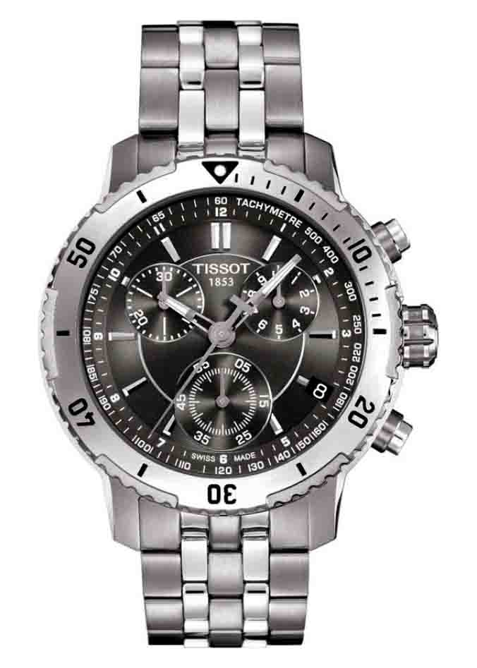 TISSOT PRS 200 (2016) T067.417.11.051.01 (mặt đen, vỏ trắng, dây kim loại trắng)