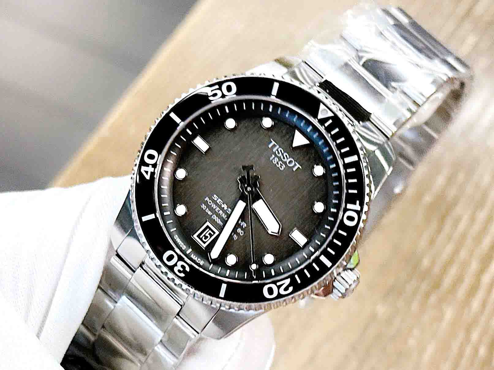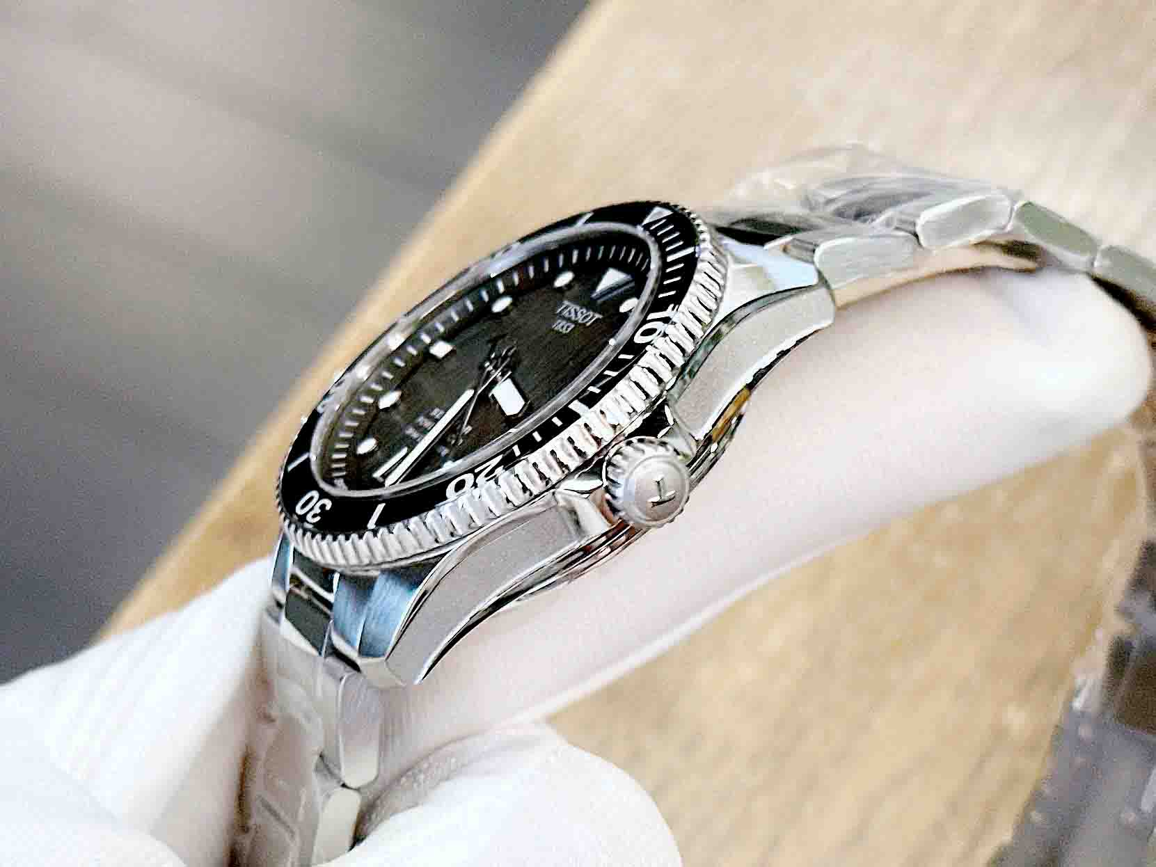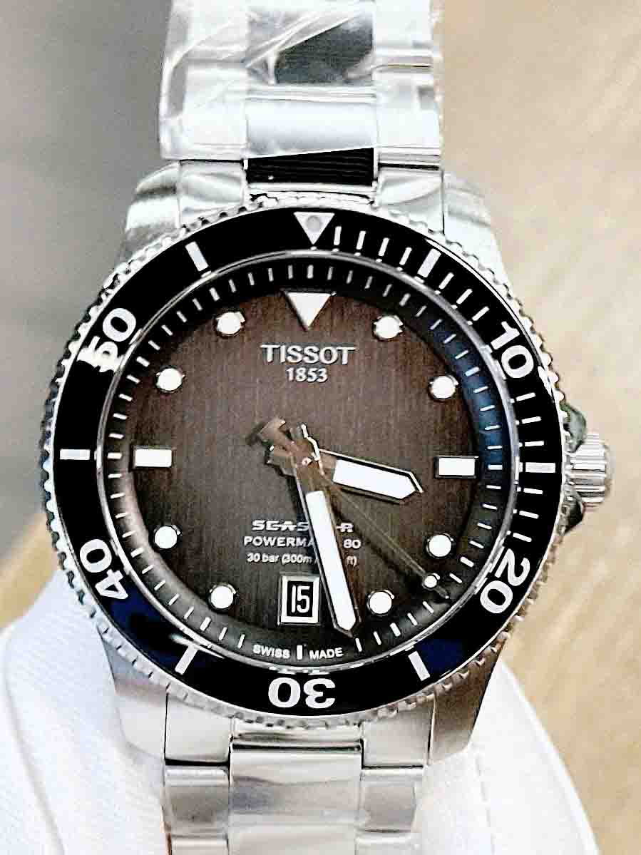 Phiên bản mới 2024 của Tissot Seastar 1000 40mm có bộ vỏ chắc chắn, lõi Powermatic 80 và mặt số đen gradient. Thiết kế tinh tế với các vết lõm nhỏ và mặt số chải dọc. Khả năng chống nước 300 mét và kim cùng vạch chỉ giờ phủ Super-LumiNova® giúp nhìn rõ trong tối. Vành bezel thép không gỉ chống xoay ngược, vòng kính khoáng in màu.