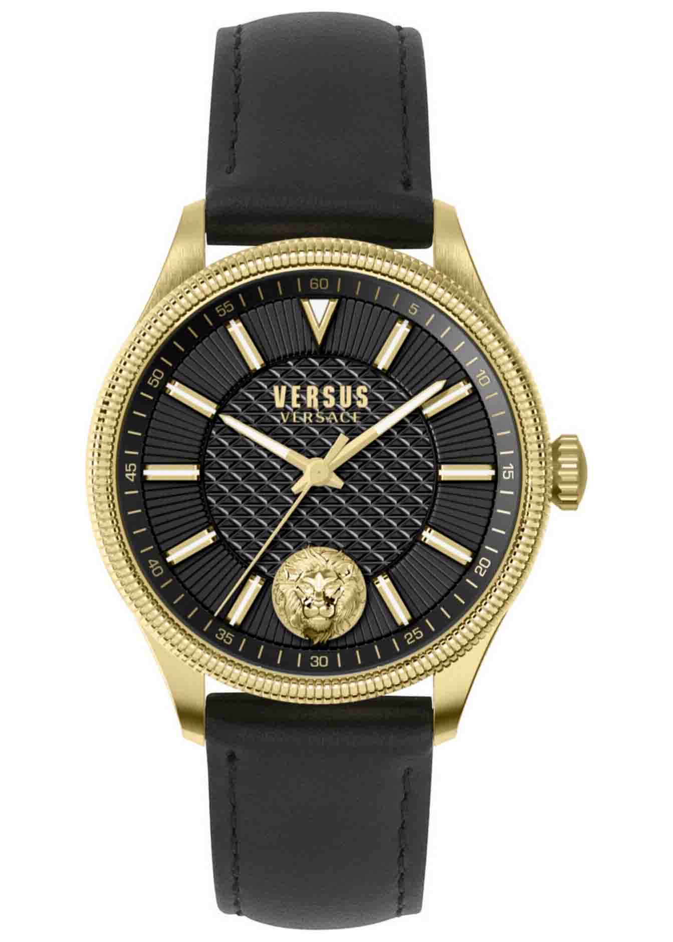 Dây da đen, biểu tượng 3D Versus Lion Head tại vị trí 6h.